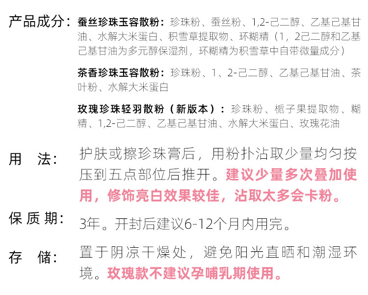 産品名稱 花初夏蠶絲珍珠玉容散粉