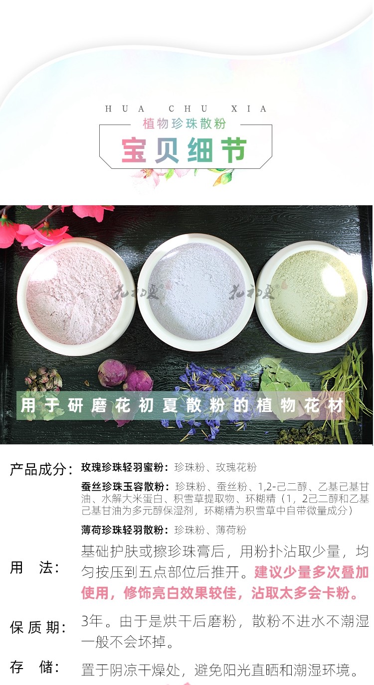 花初夏古法天然植物散粉晚安粉蜜粉吸油定妝粉無需卸妝國貨彩妝