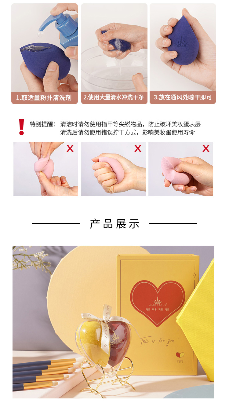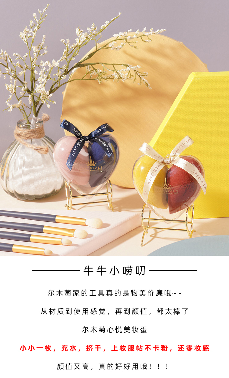 新款AMORTALS爾木萄美妝蛋心形心悅海綿蛋彩妝乾溼兩用不吃粉