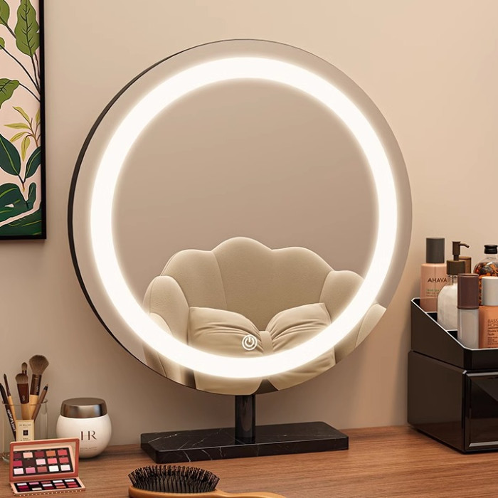 輕奢led帶燈化妝鏡桌上型桌面梳妝台宿舍臥室補光充電可旋轉大鏡子