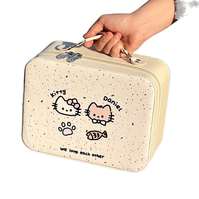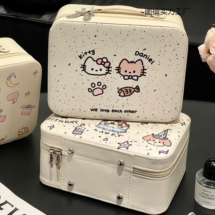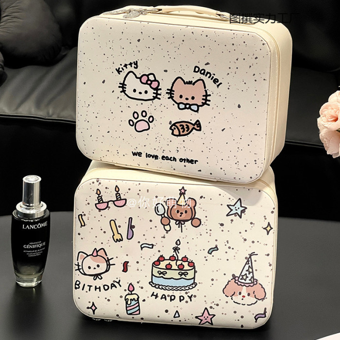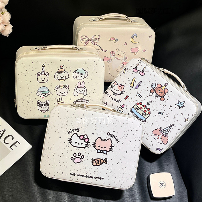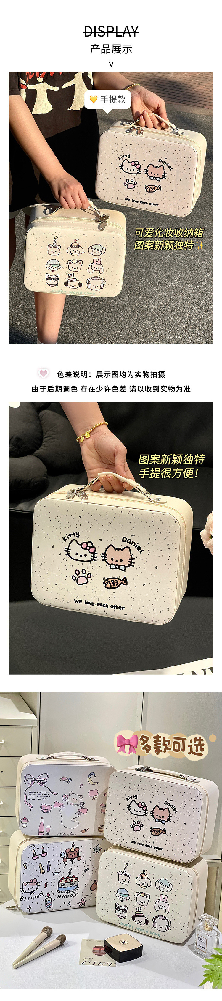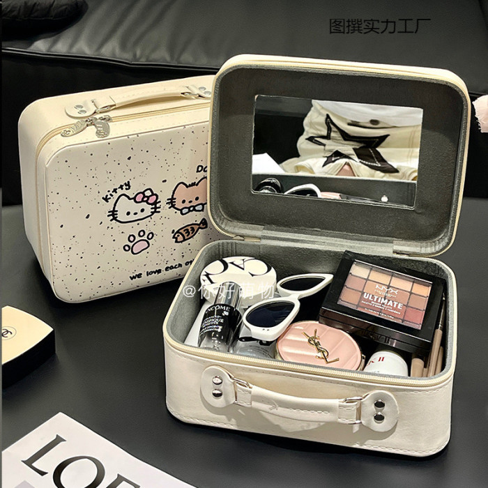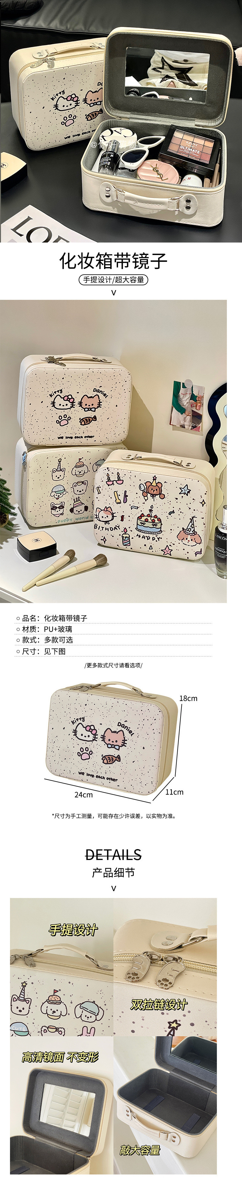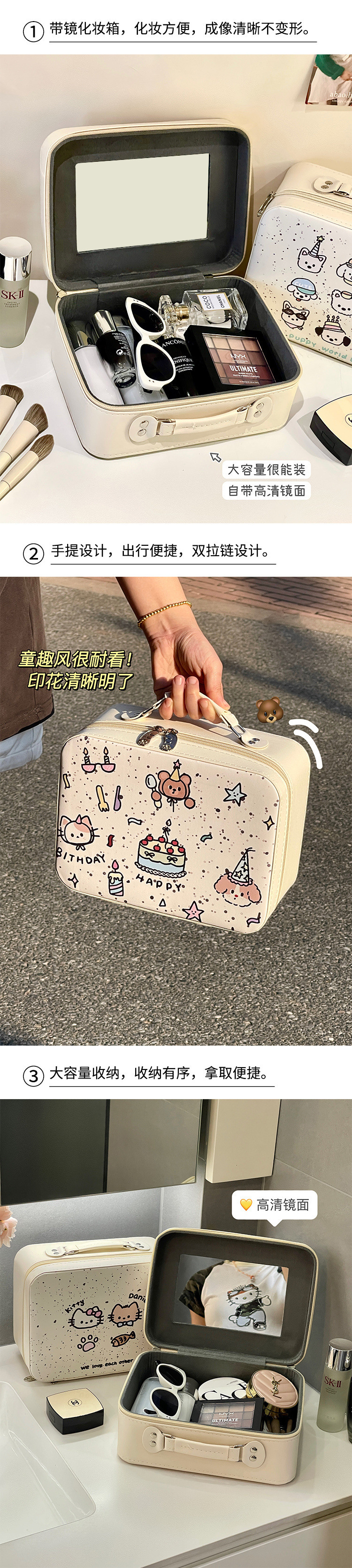 化妝包帶鏡子大容量可愛化妝箱小手提箱女旅行可攜式化妝品收納包