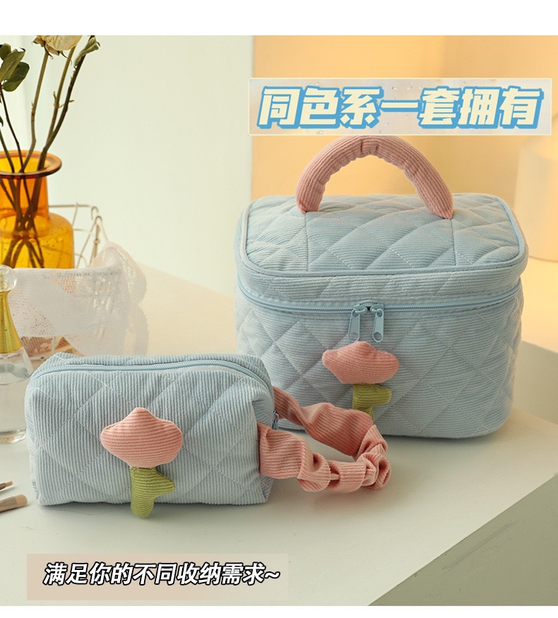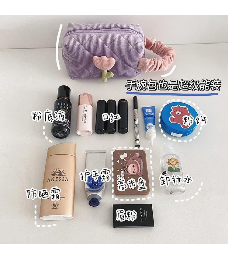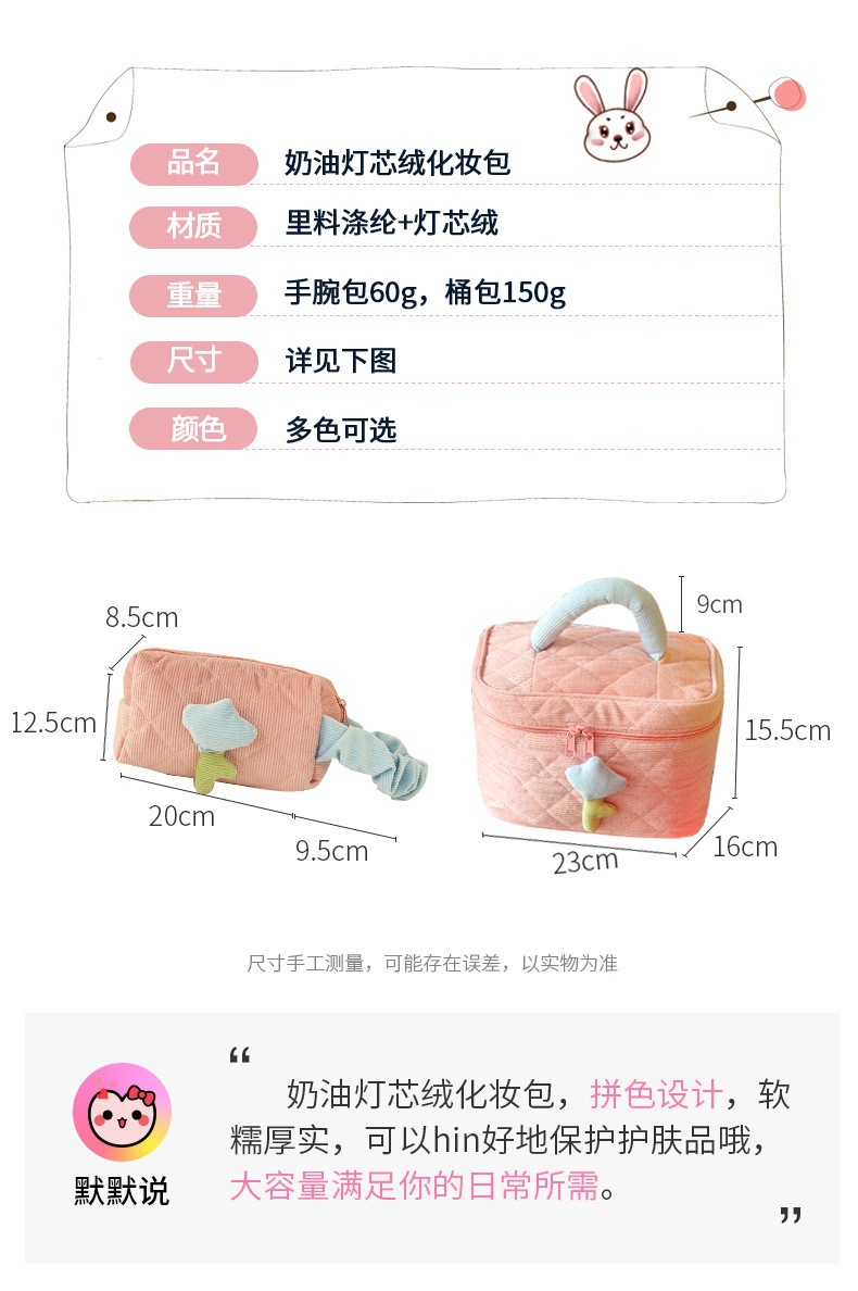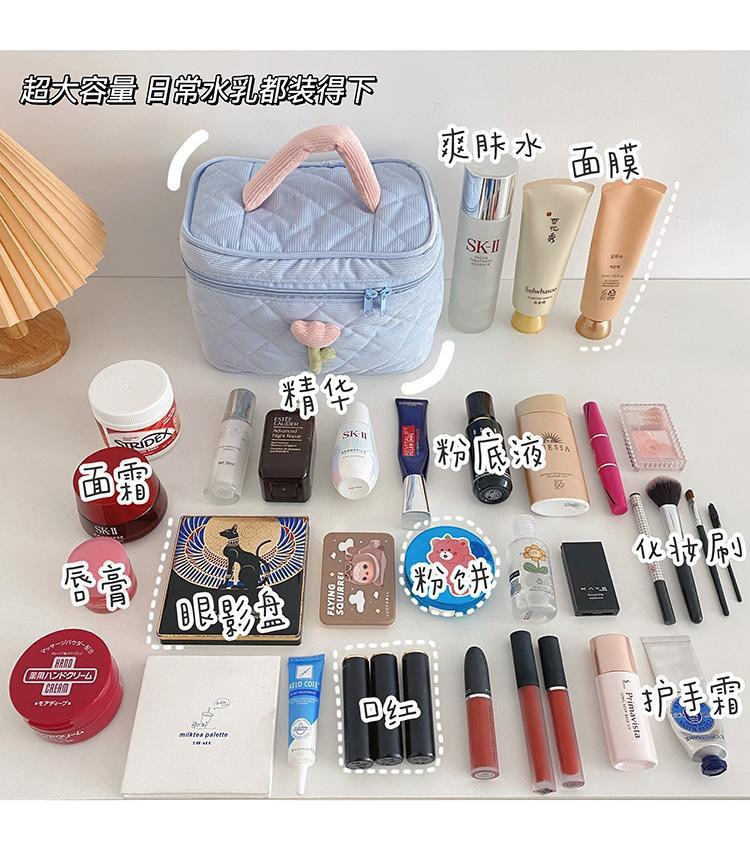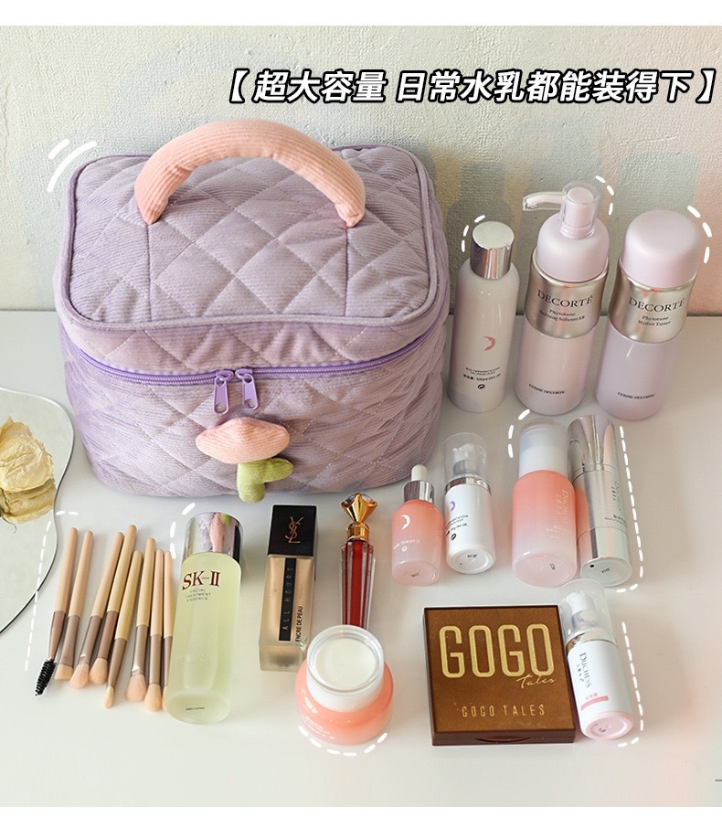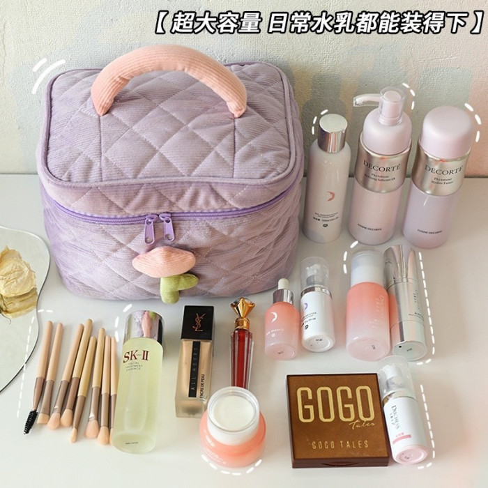 化妝包燈芯絨可愛化妝包高級感可愛洗漱包可攜式大容量化妝品收納包