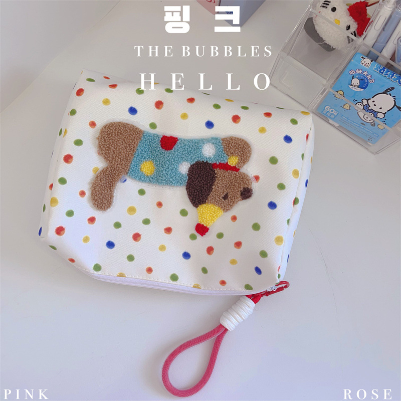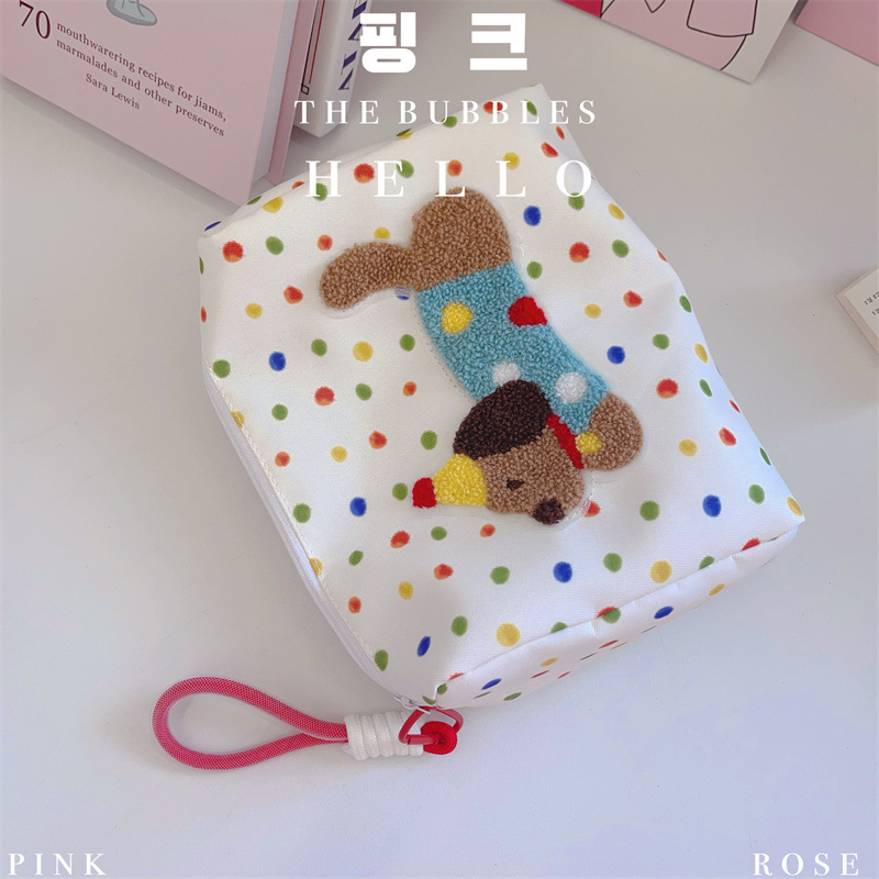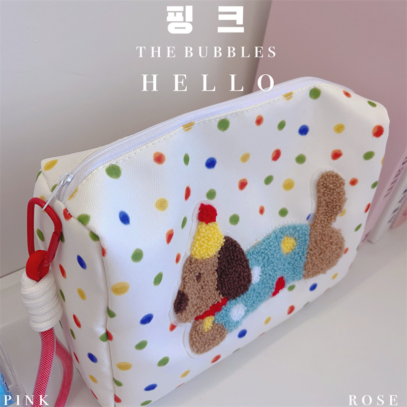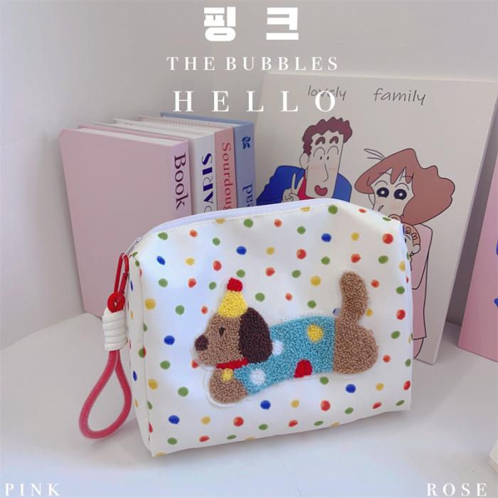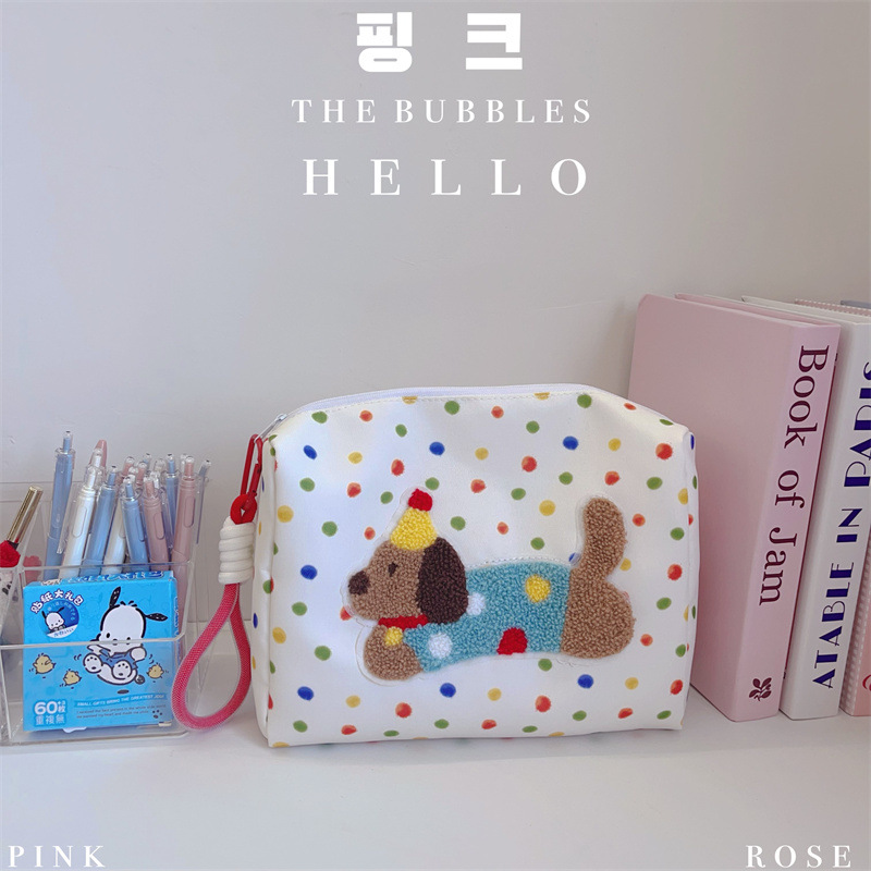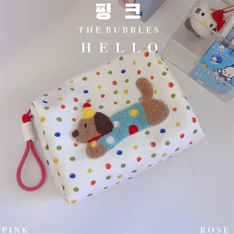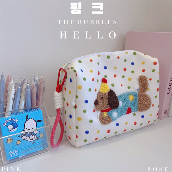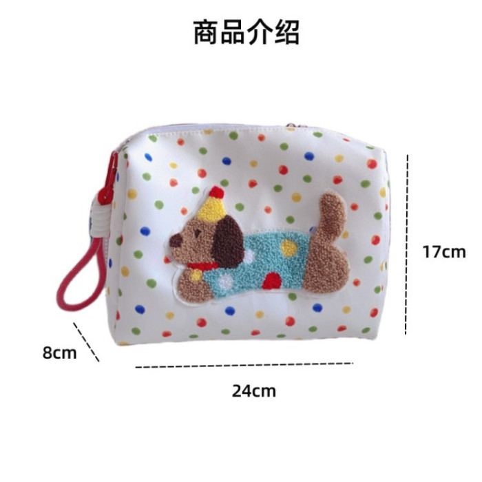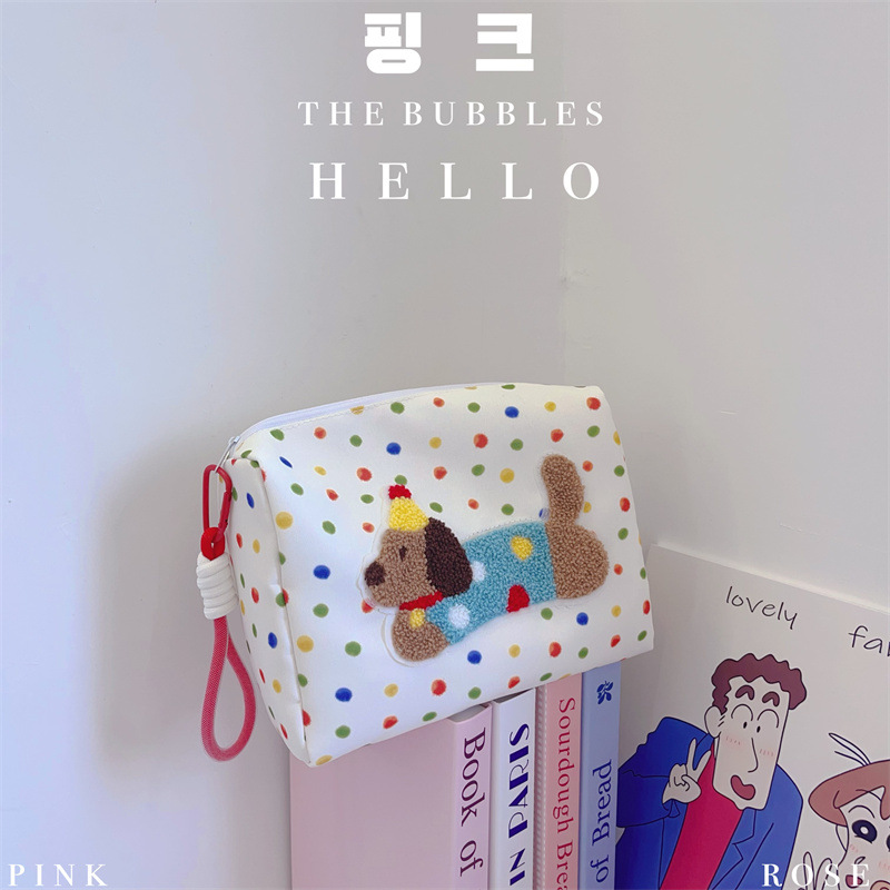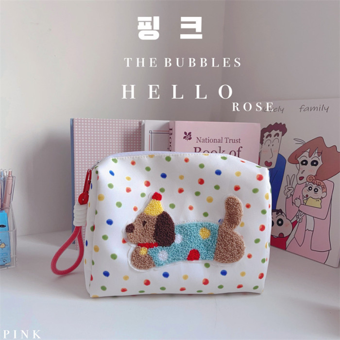 韓系ins新款波點小狗可愛化妝包收納包可攜式洗漱包包女筆袋化妝包