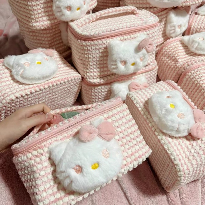 小香風卡通貓咪化妝包女大容量可攜式手提化妝品收納包旅行洗漱包包