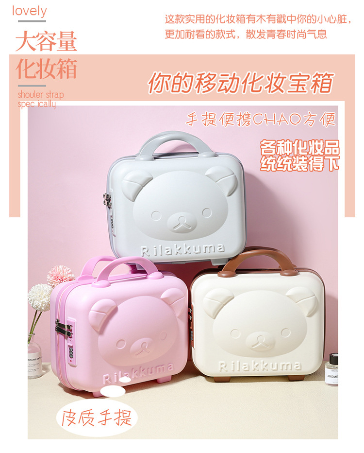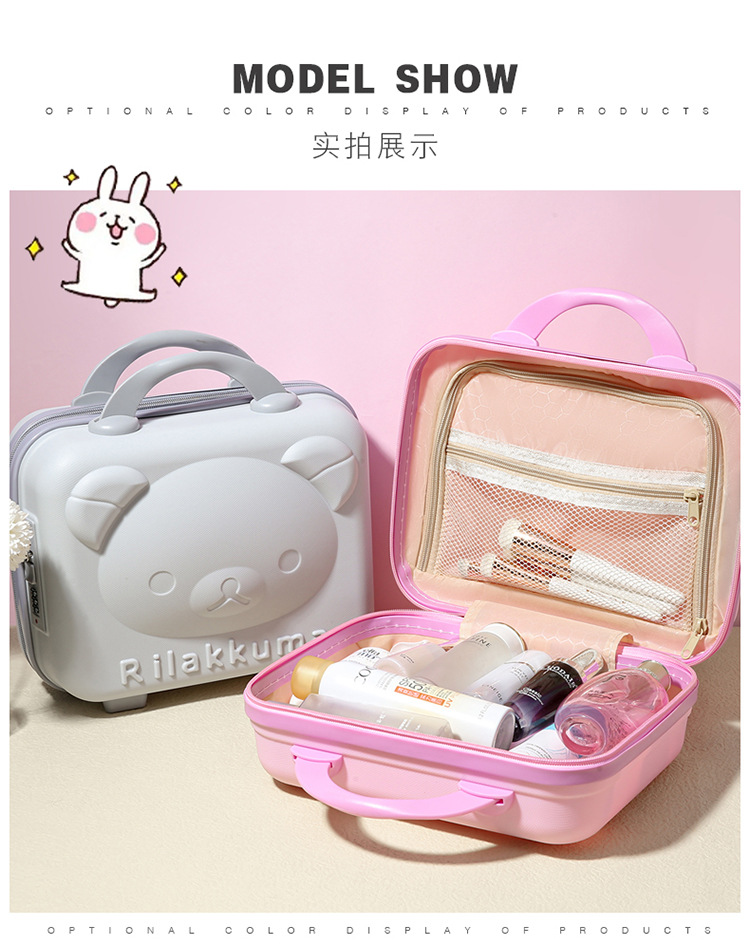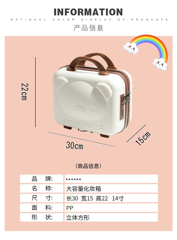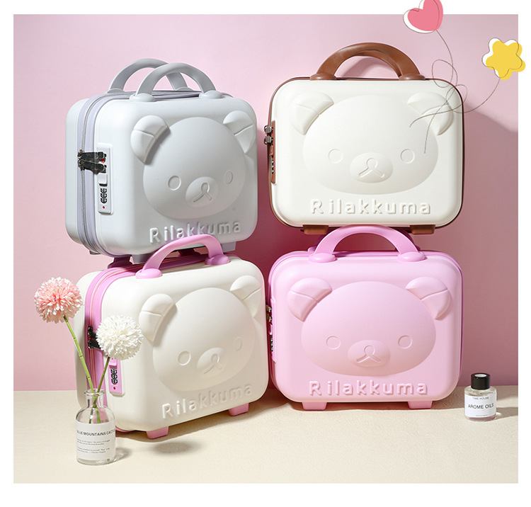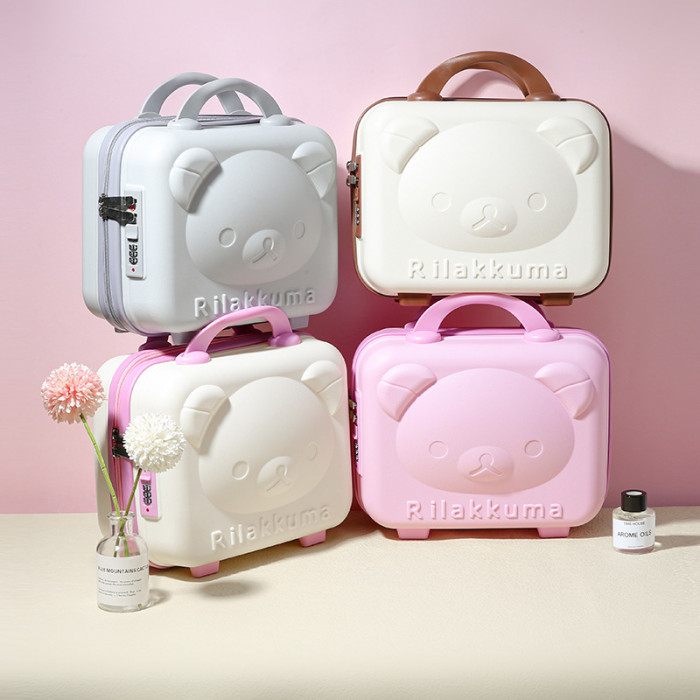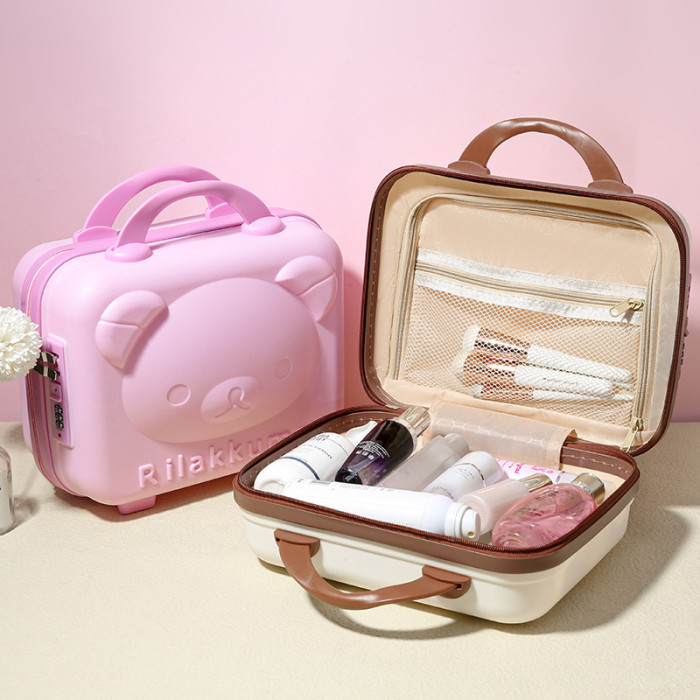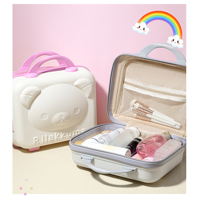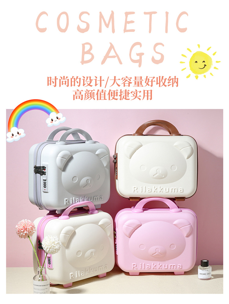 14寸PP手提行李箱3D卡通小熊化妝箱多功能迷你化妝收納包伴手禮