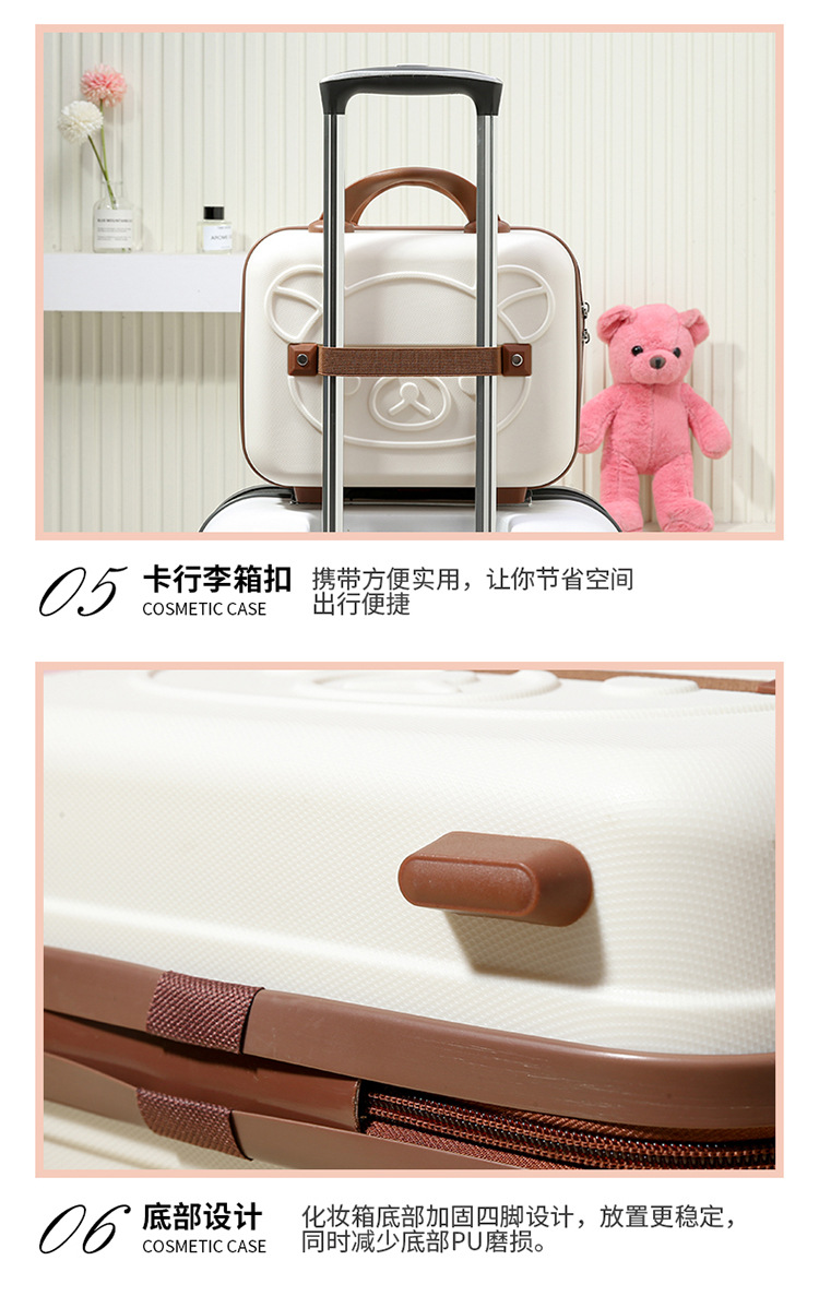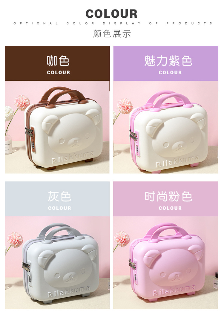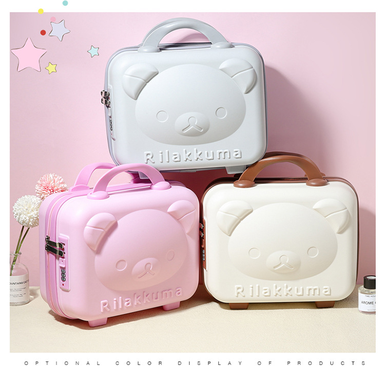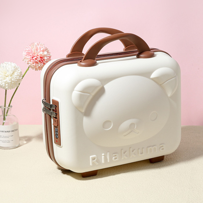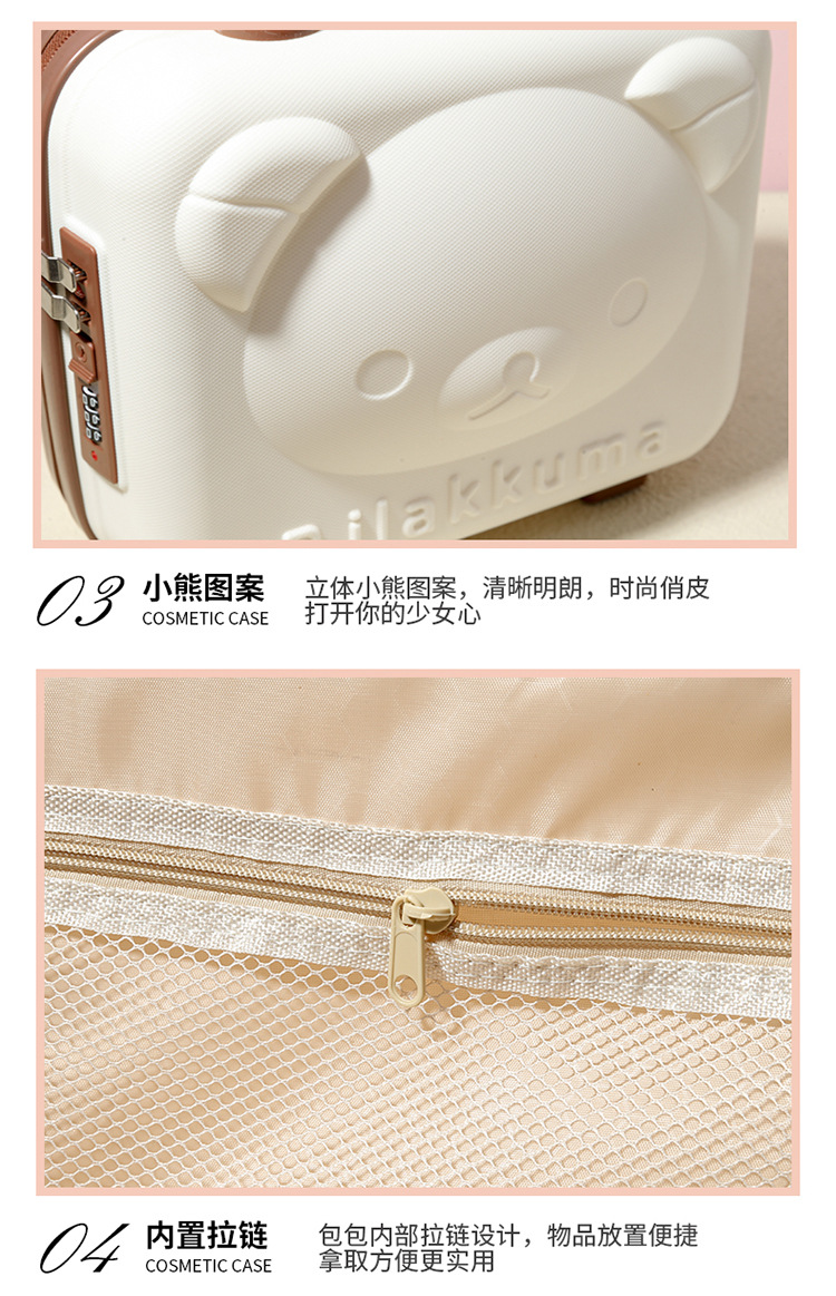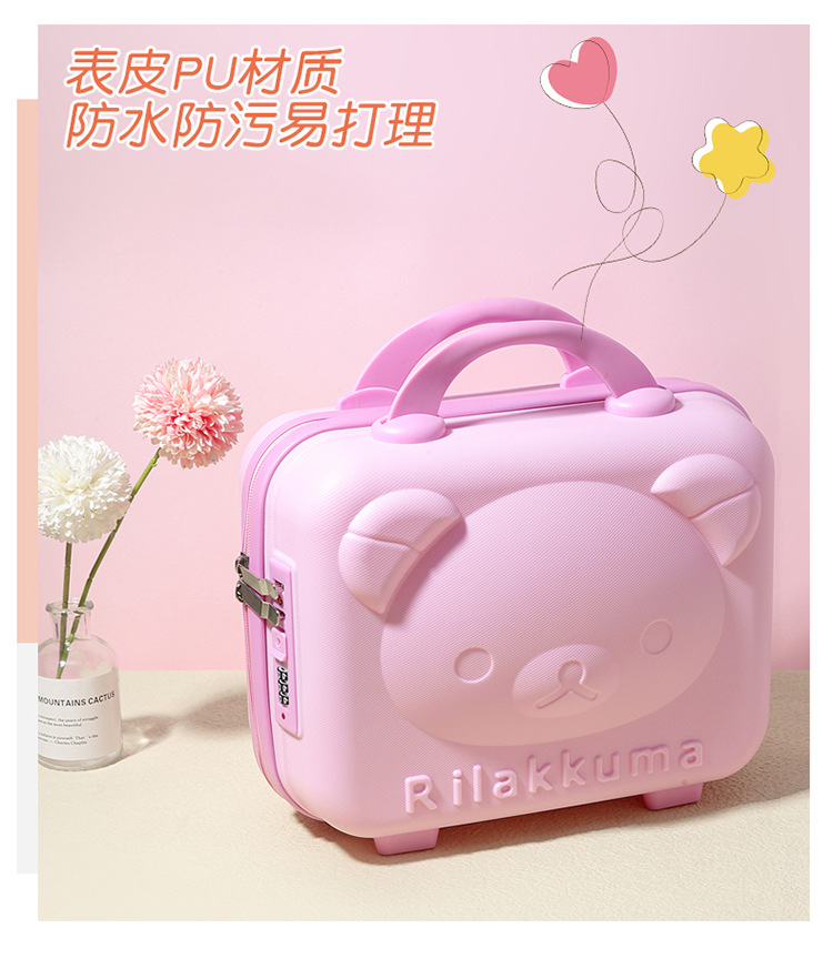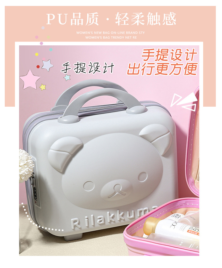 14寸PP手提行李箱3D卡通小熊化妝箱多功能迷你化妝收納包伴手禮