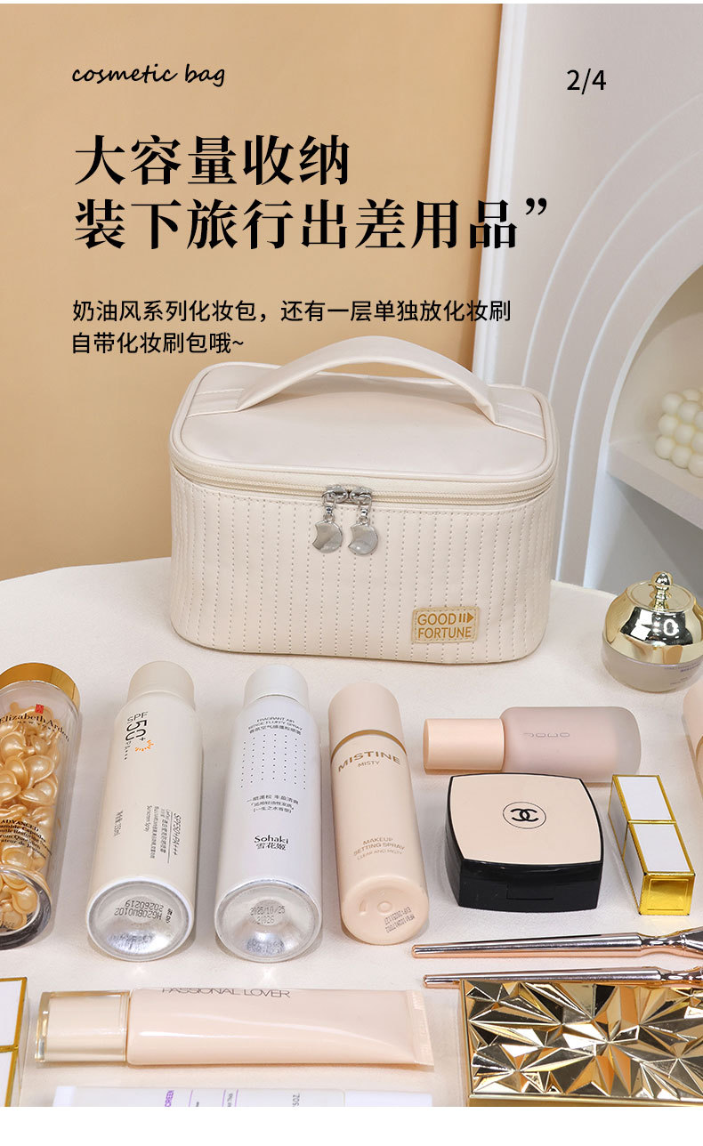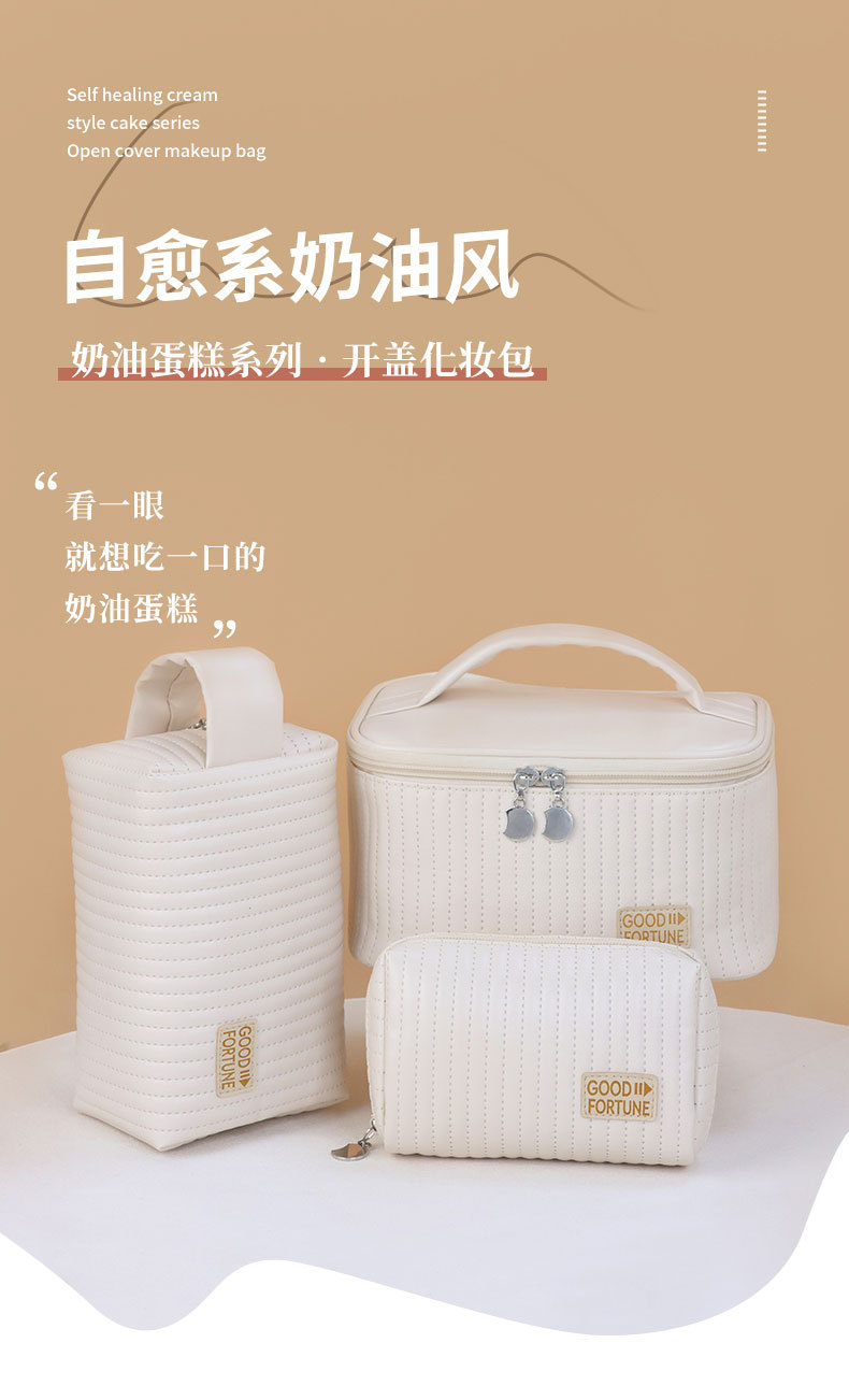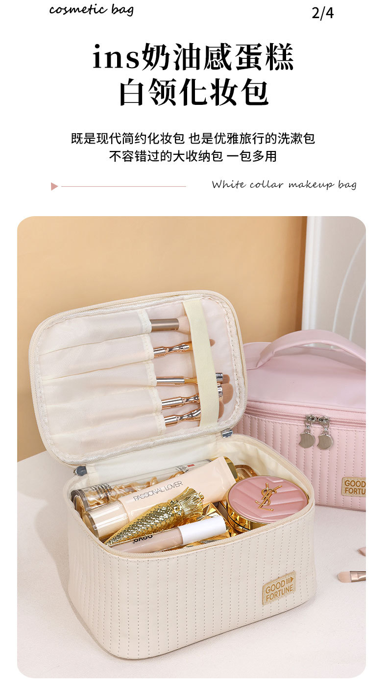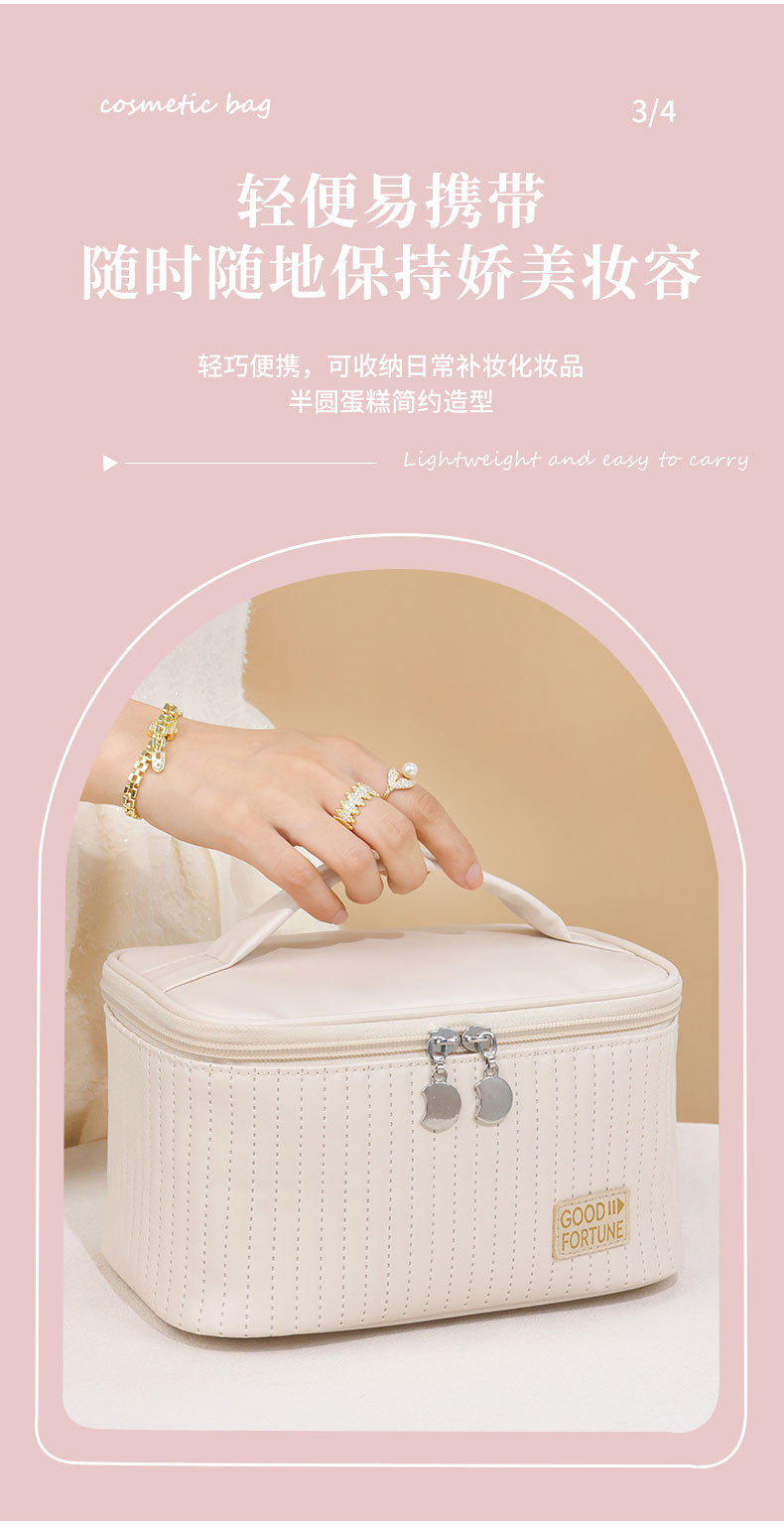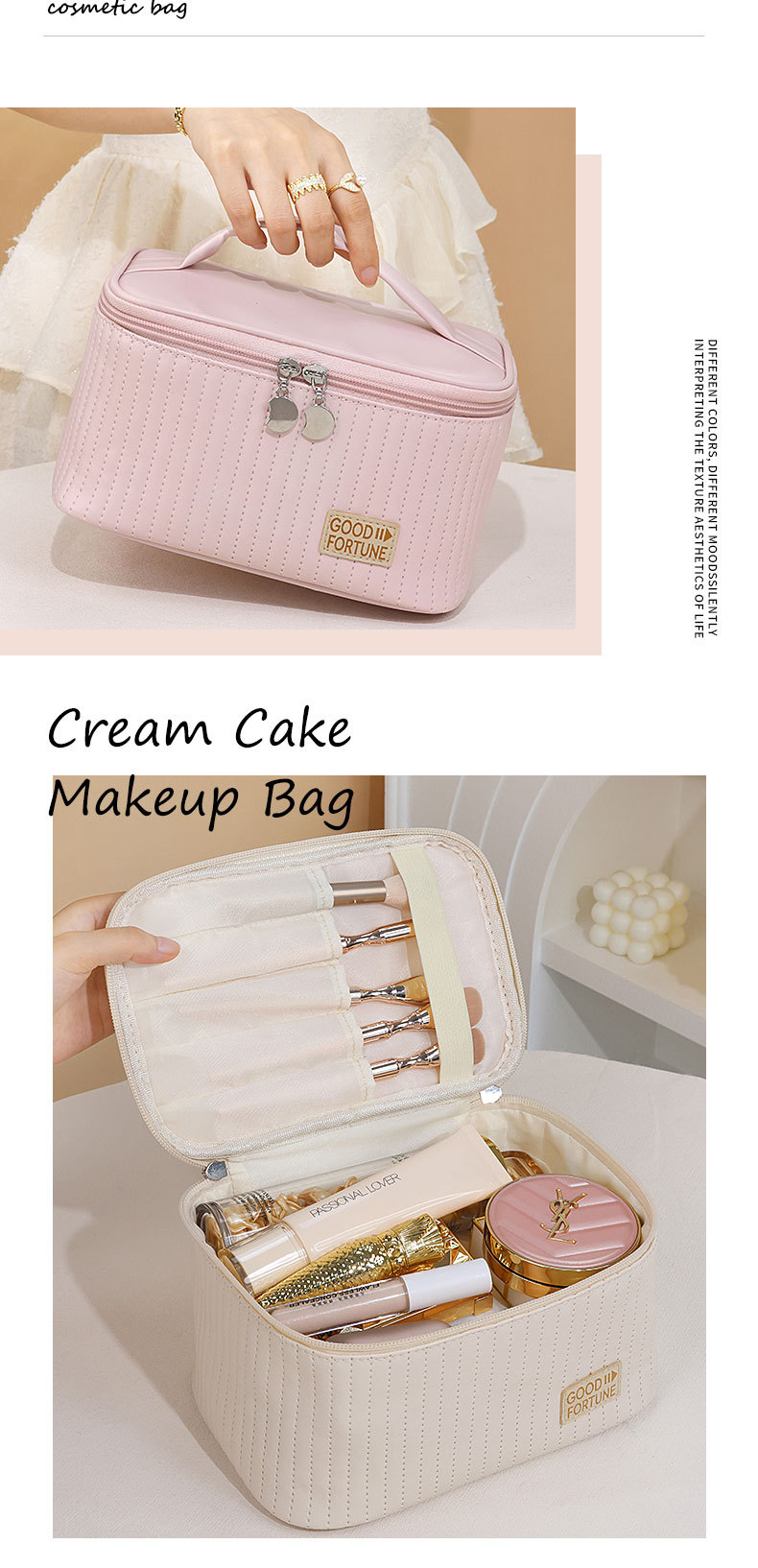 開蓋蛋糕化妝包PU純色手提洗漱包化妝品收納包化妝包大容量高級感