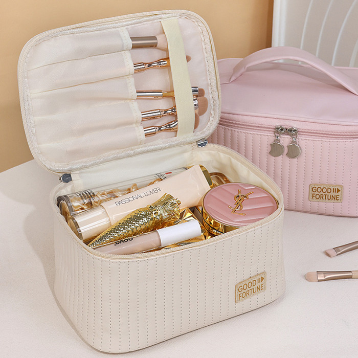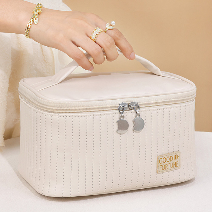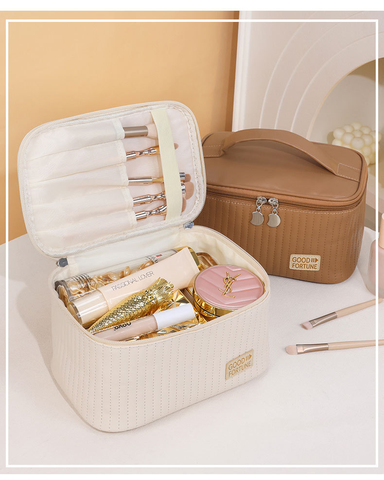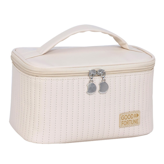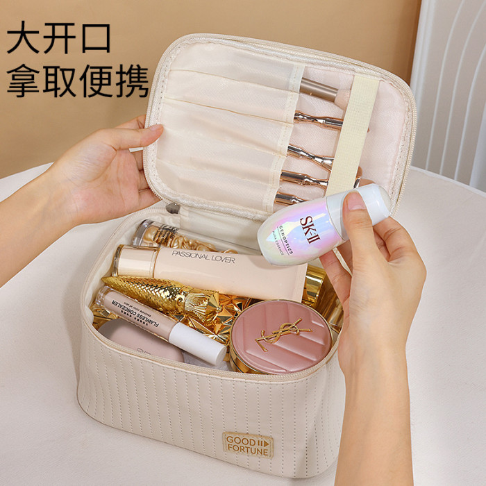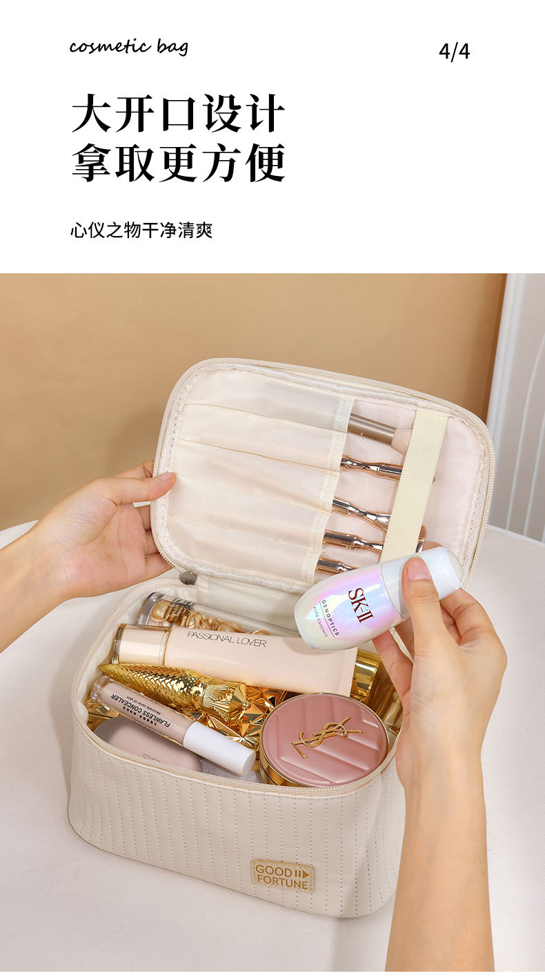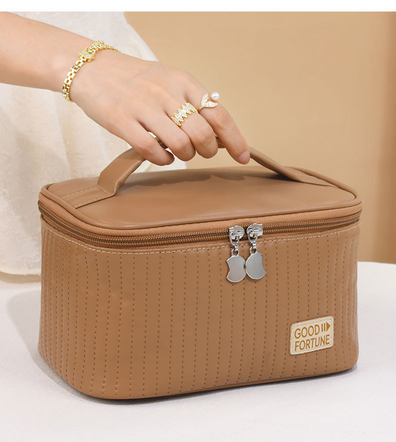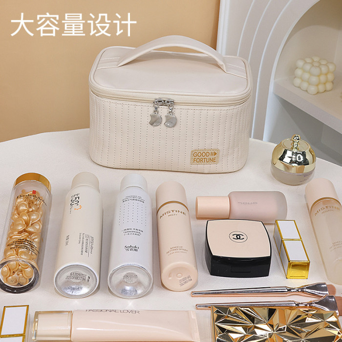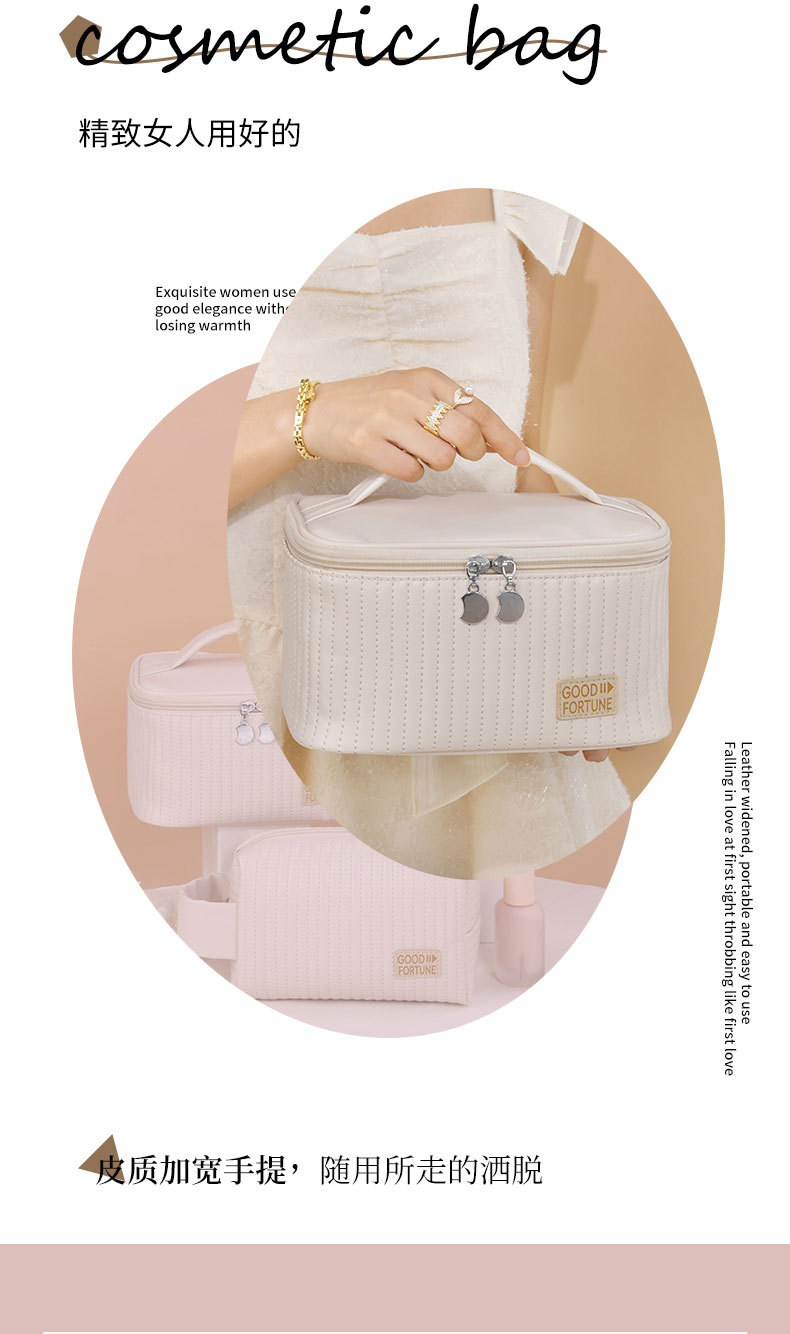 開蓋蛋糕化妝包PU純色手提洗漱包化妝品收納包化妝包大容量高級感