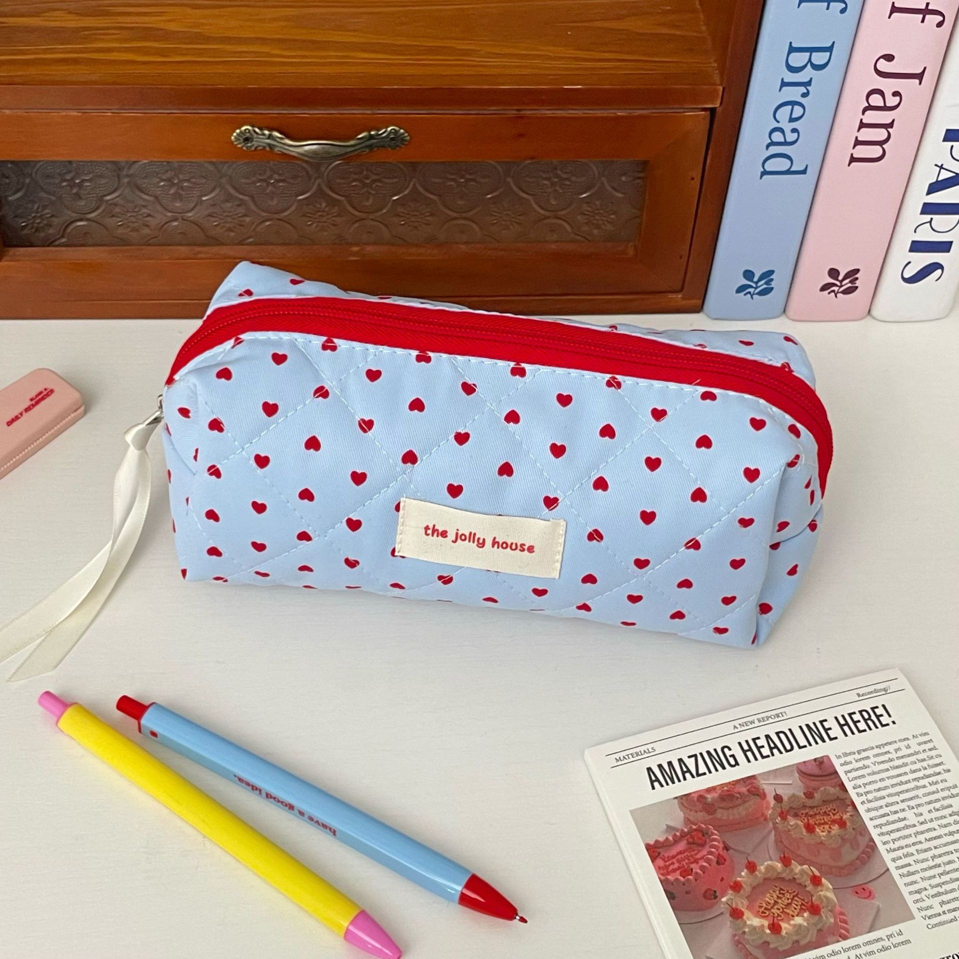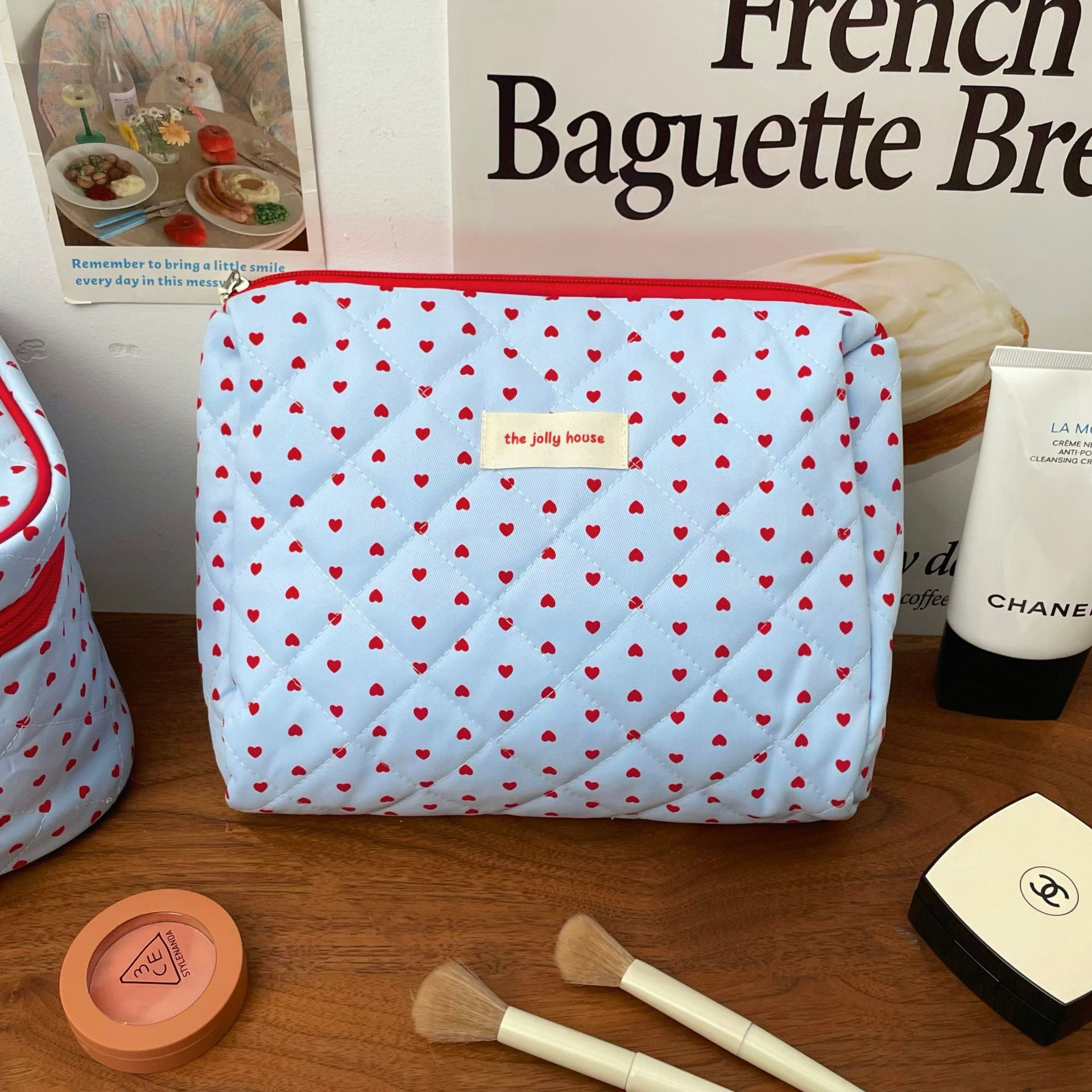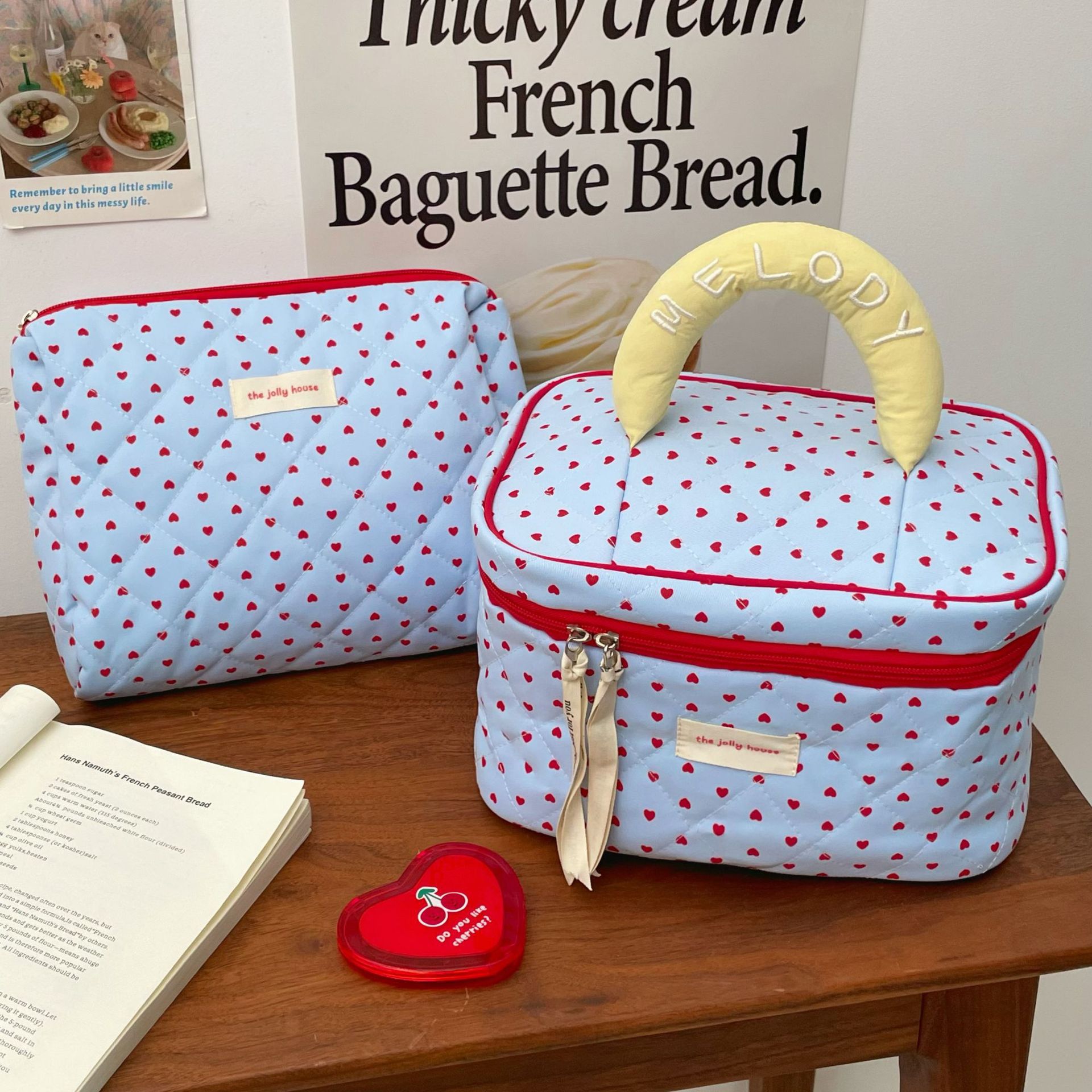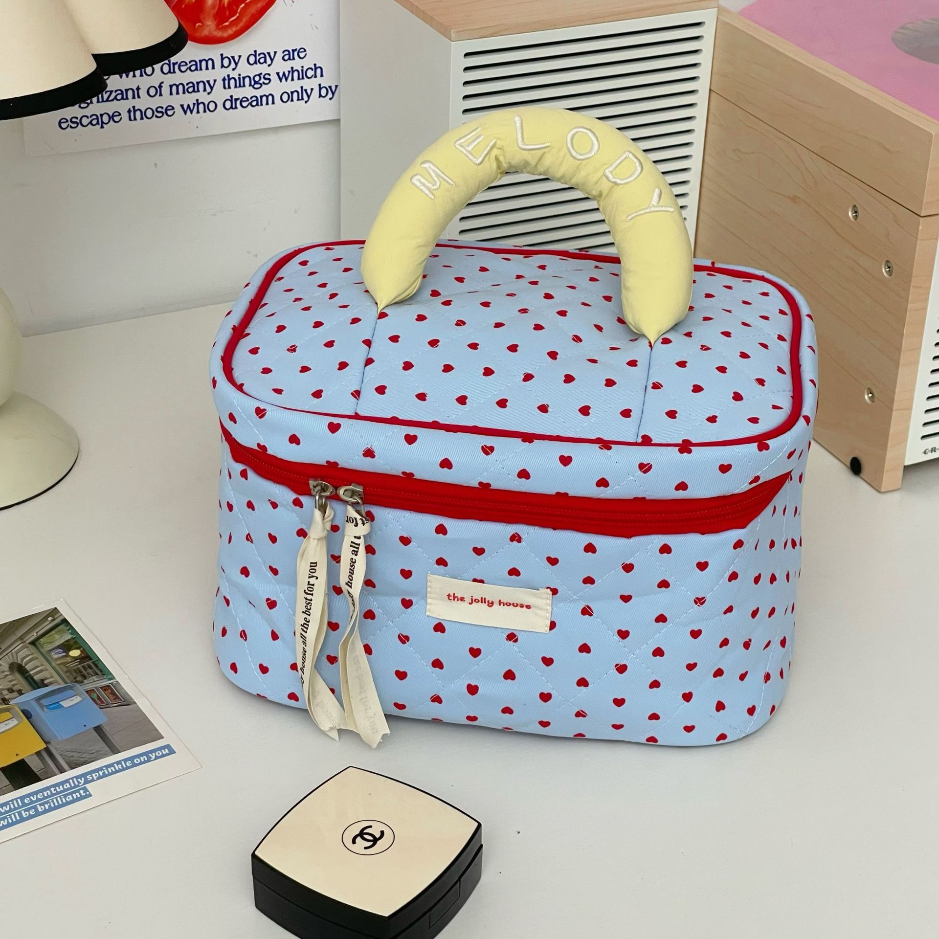 藍色愛心化妝包女起批2025新款可攜式大容量化妝品收納包手提包