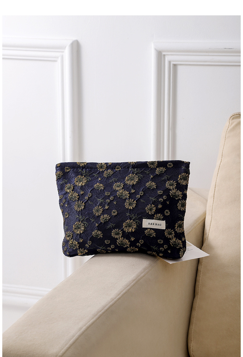 韓版金絲小雛菊色織化妝包旅行可攜式拉鍊帆布收納包口紅手拿包