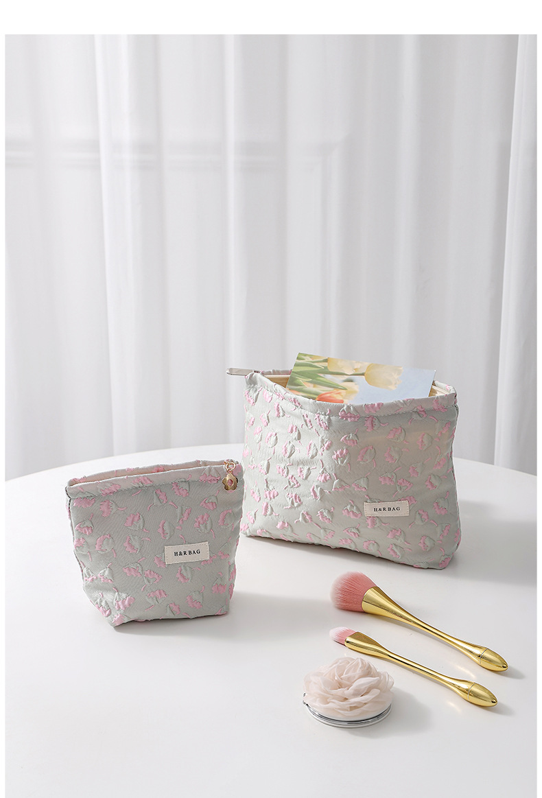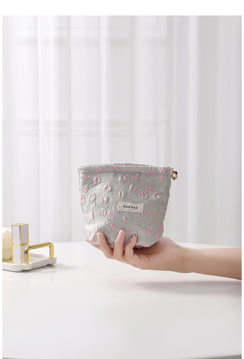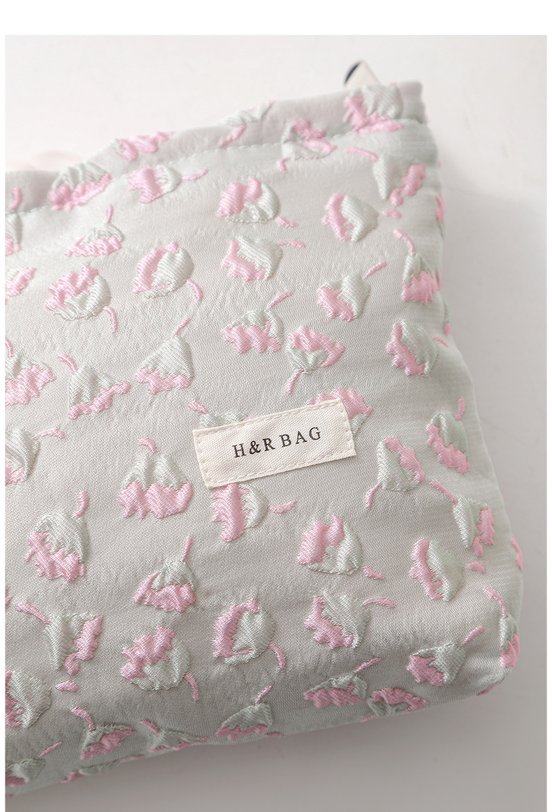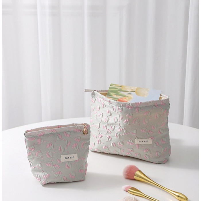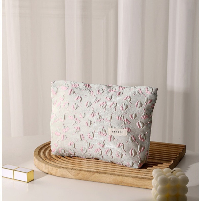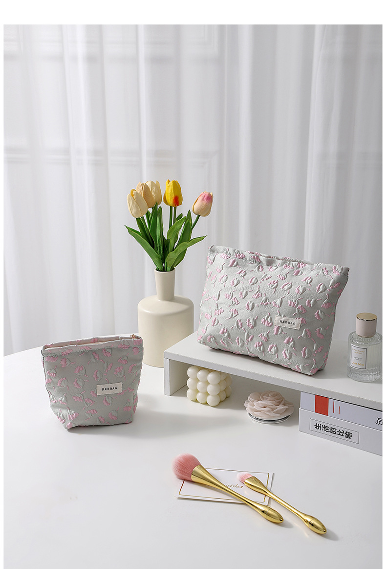 浮雕碎花學生可攜式收納包大容量清新少女逛街日常搭配高顔值化妝包
