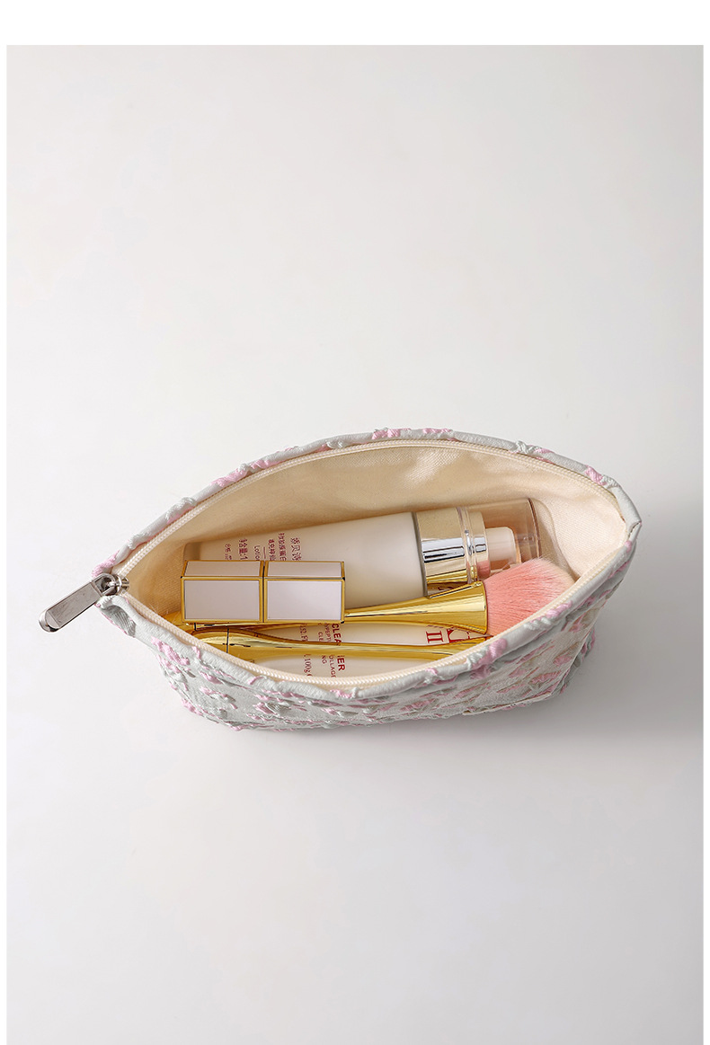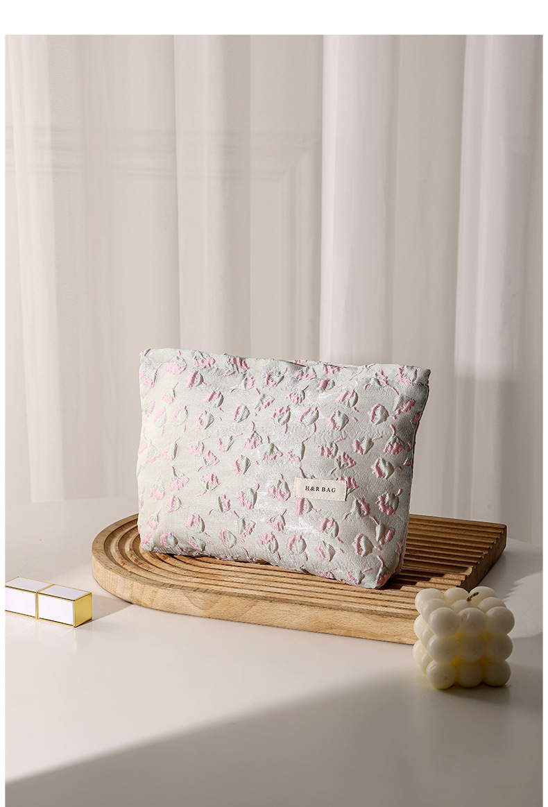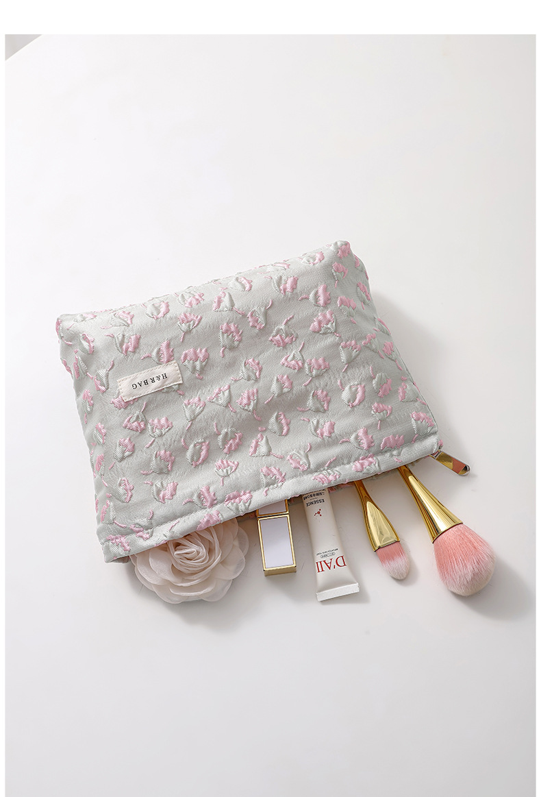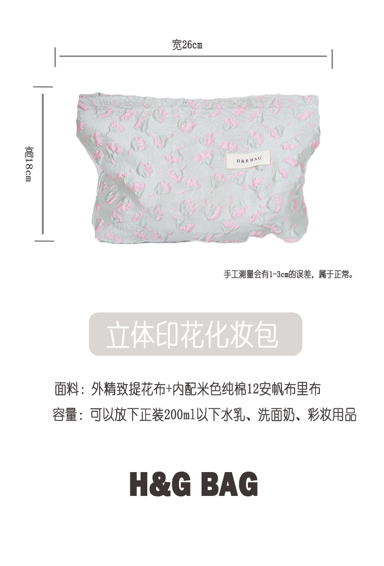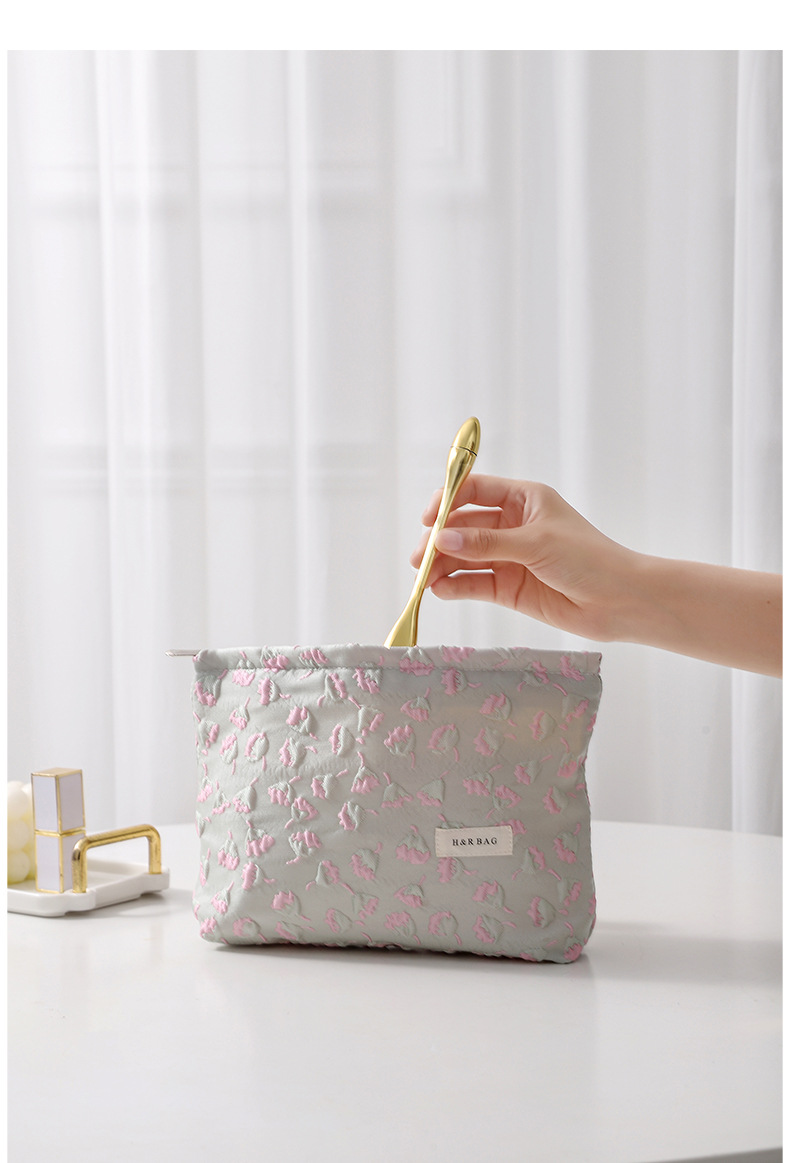 浮雕碎花學生可攜式收納包大容量清新少女逛街日常搭配高顔值化妝包