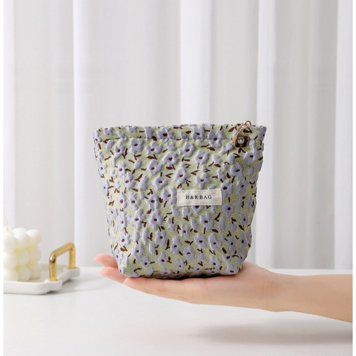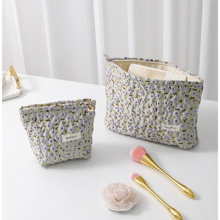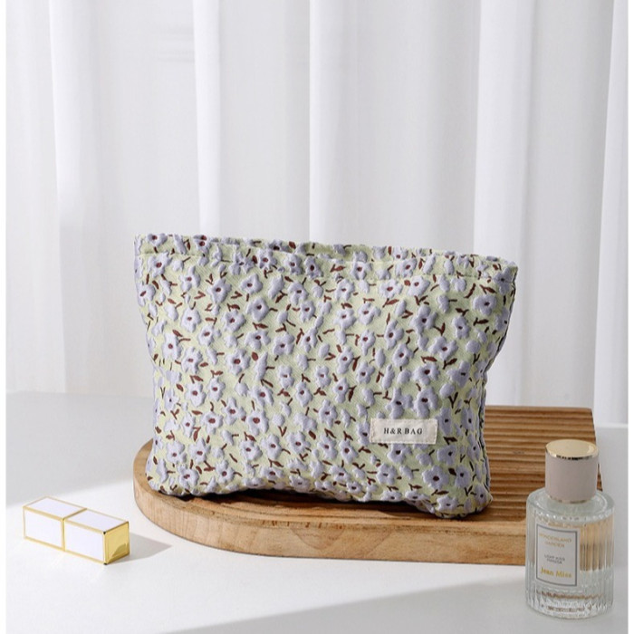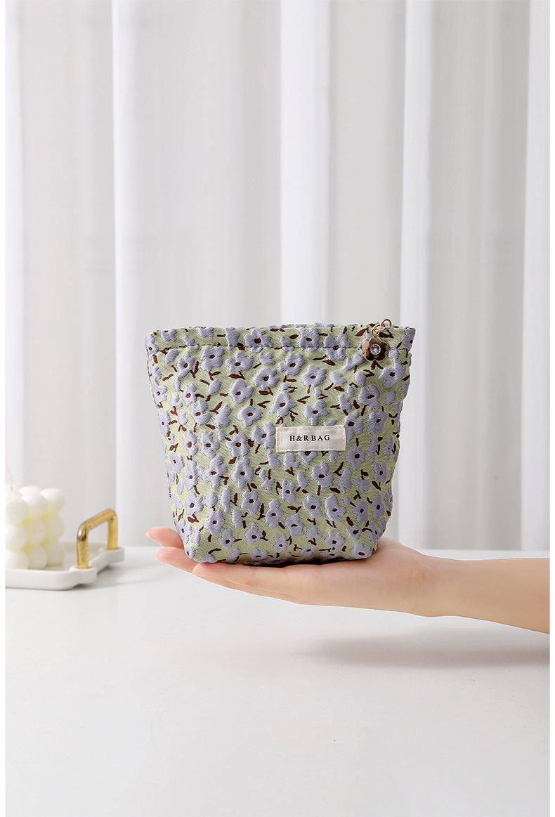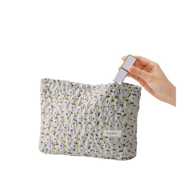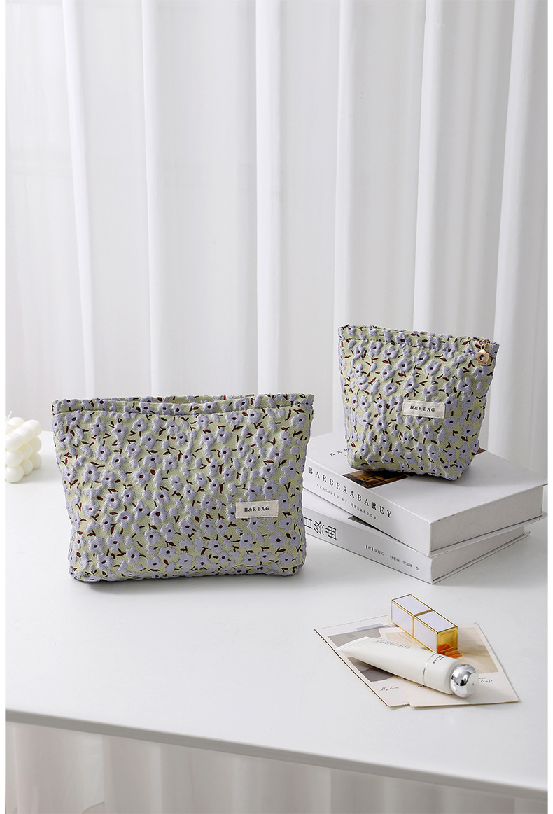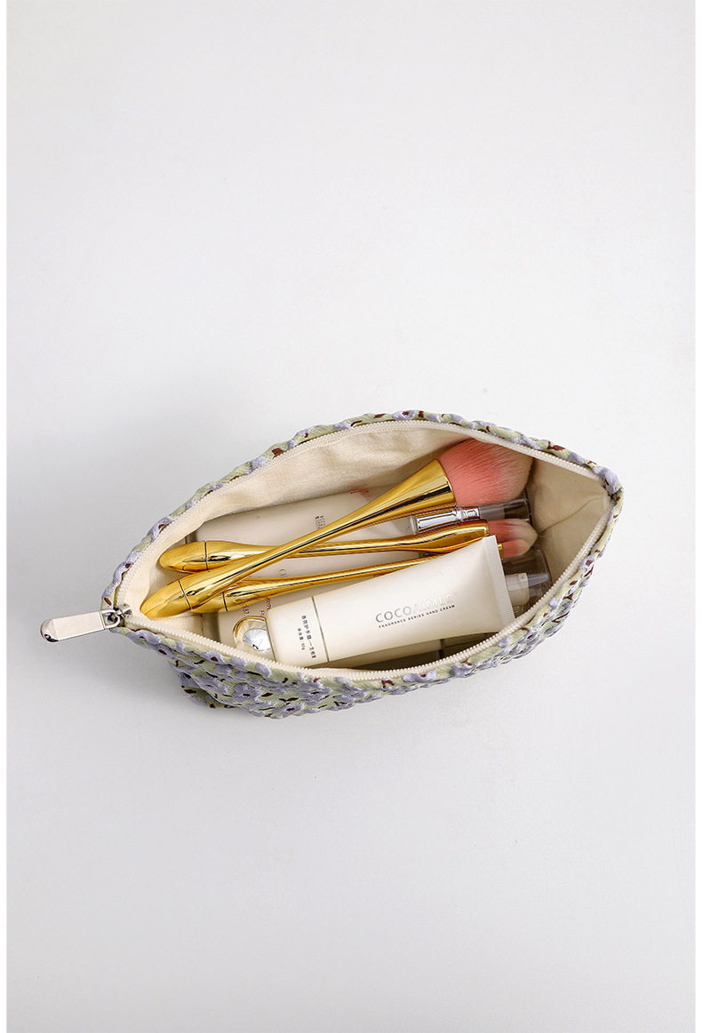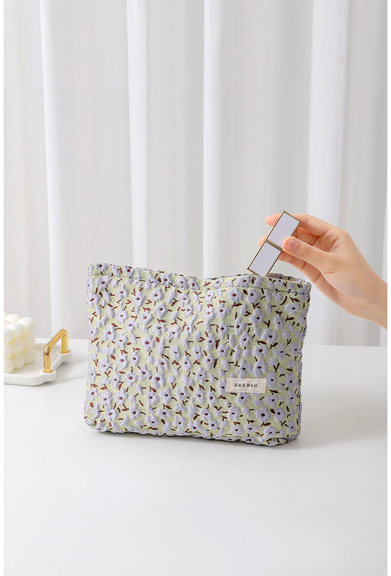 小衆in’s風撞色碎花高級感提花化妝包女護膚品收納包大容量內膽