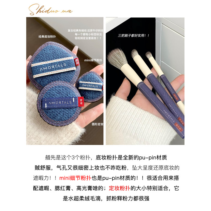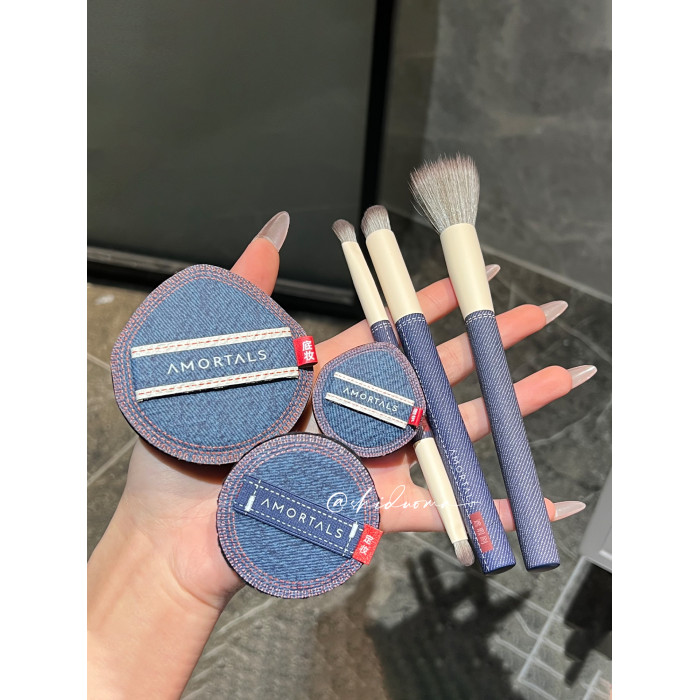 新手艏選!爾木萄 就這一套新手牛仔粉撲化妝刷套裝 不易吃粉遮瑕