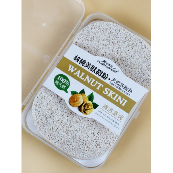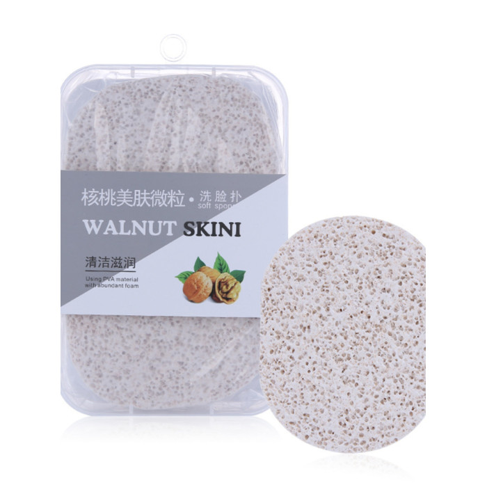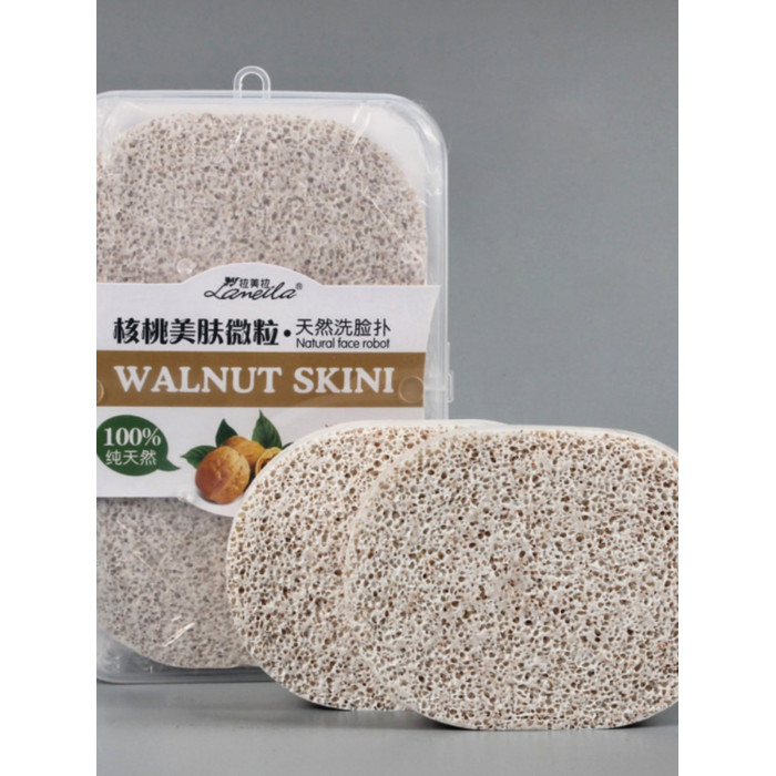 拉美拉木漿棉核桃洗臉撲卸妝潔面粉撲加厚加大孔磨砂帶盒2片裝