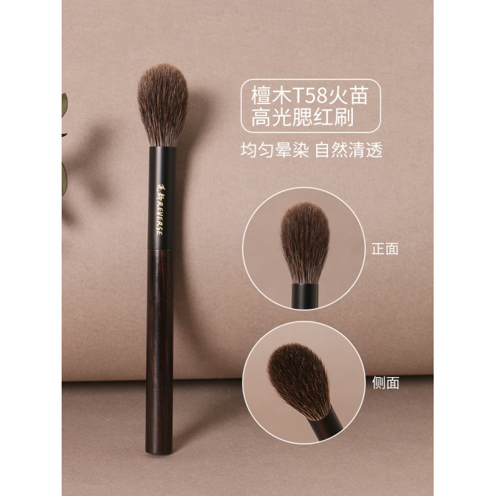 逆齡T58檀木火苗高光腮紅刷柔軟新手可攜式軟毛多功能圓頭化妝刷
