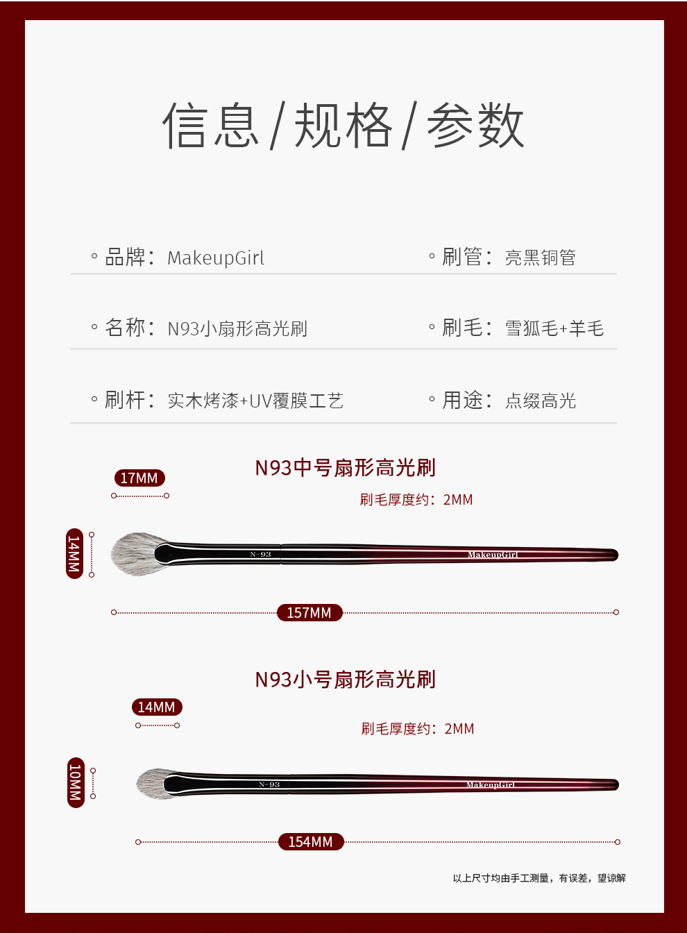 | 品名 | 硃釉N93小扇形高光刷 |