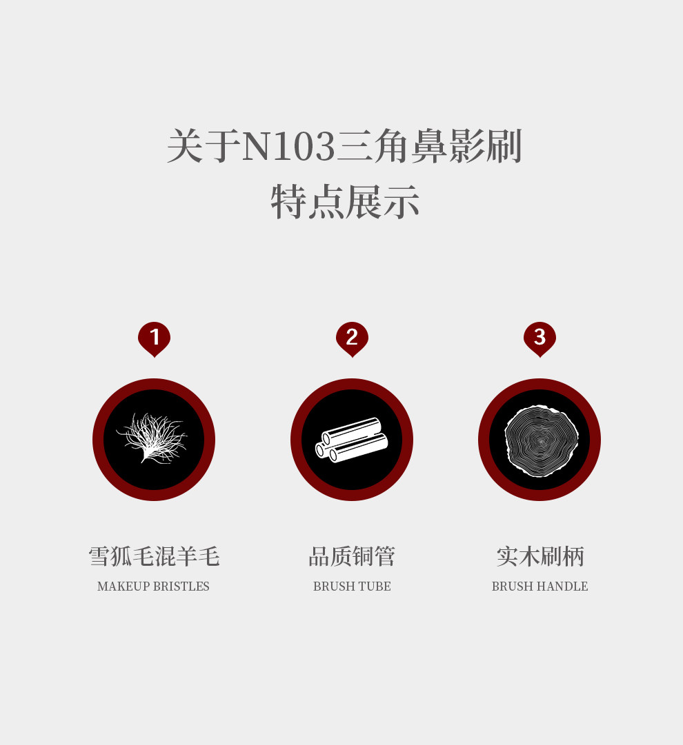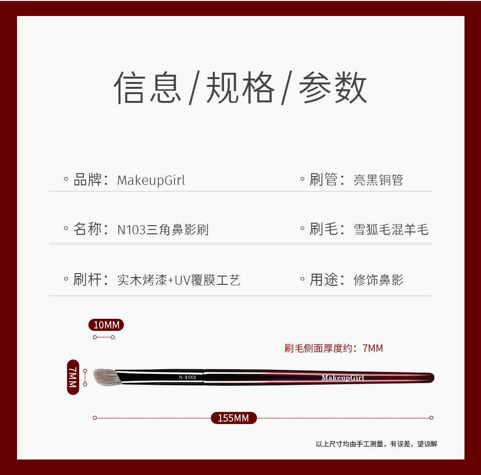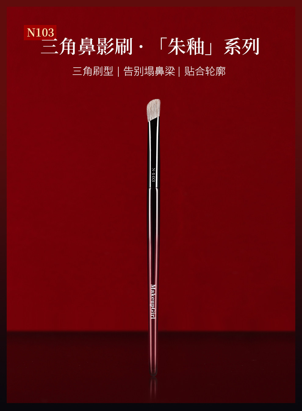 魅女郎硃釉N103三角鼻影刷動物毛小號斜頭鼻翼修容隂影專業化妝刷