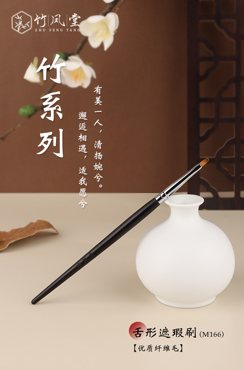 竹鳳堂化妝刷M166舌形遮瑕刷扁頭精細遮暇刷淚溝斑點法令紋竹風堂
