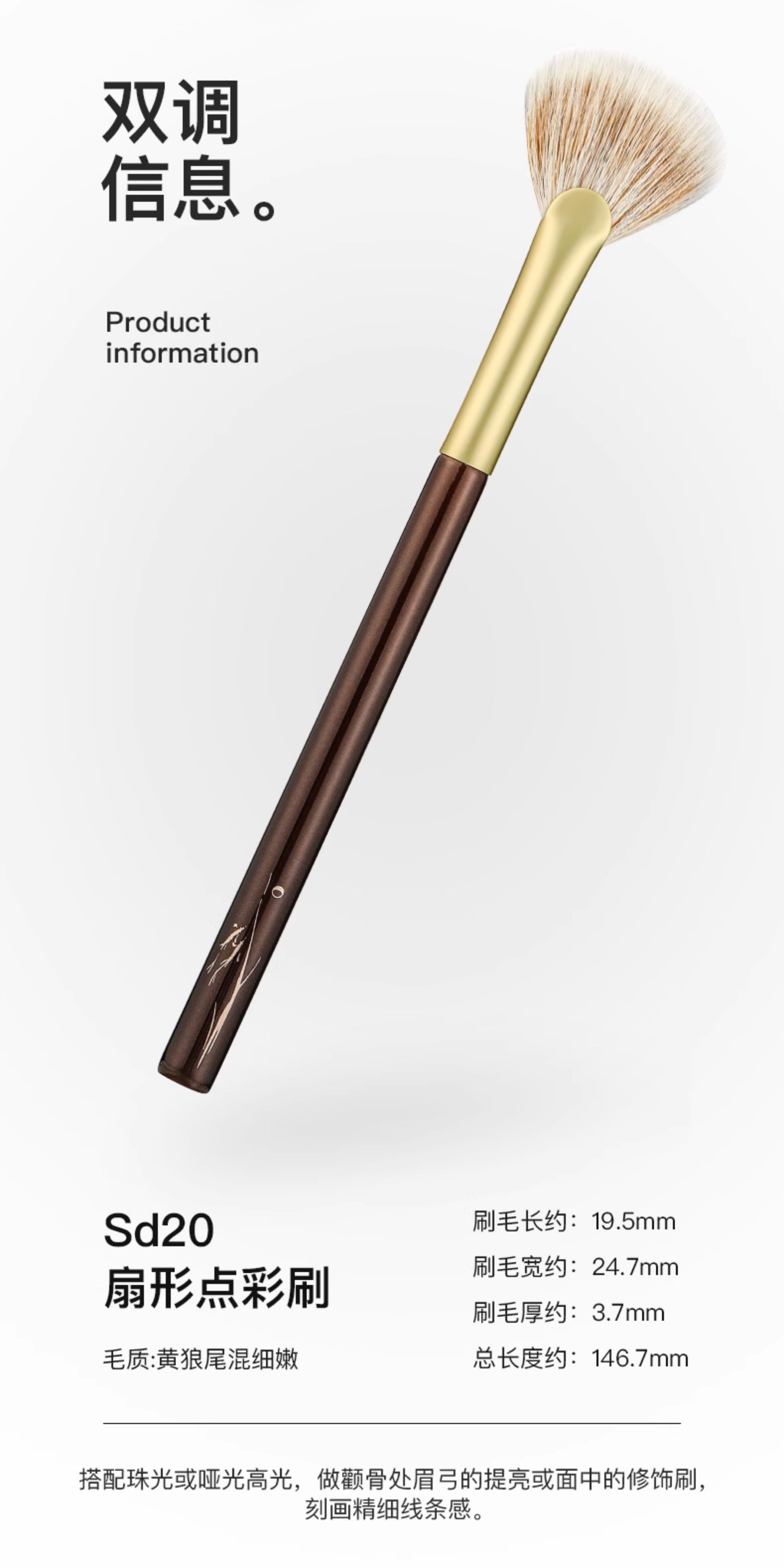Fix+/菲絲加芬雙調sd20黃狼尾混細嫩扇形刷高光刷腮紅刷