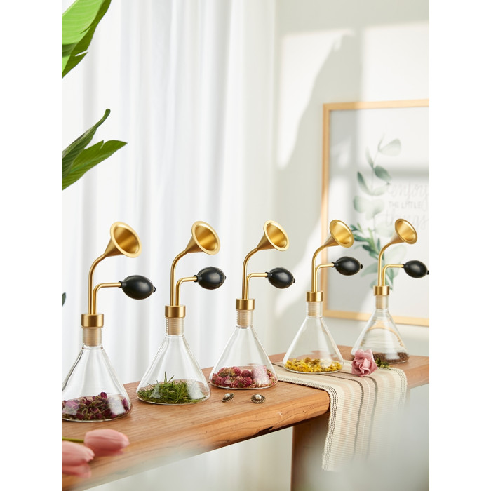 白酒聞香器精油聞香瓶spa會所玻璃試聞瓶黃銅喇叭試香水茶葉工具