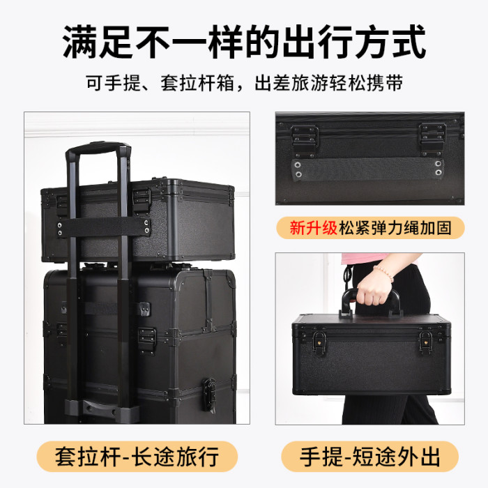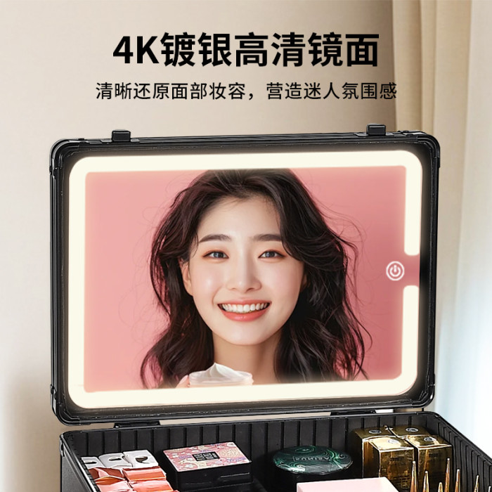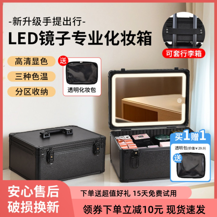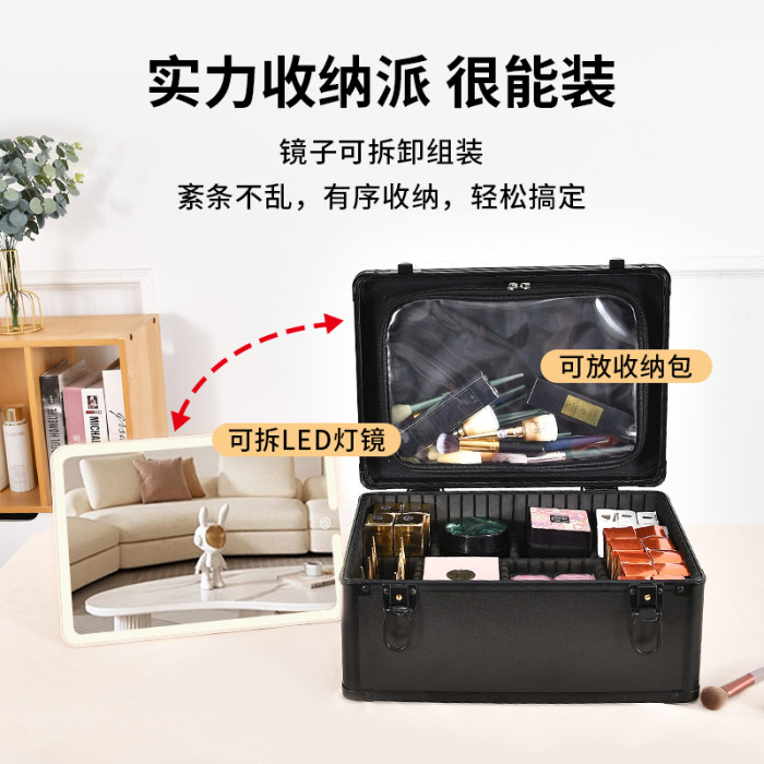 化妝箱帶鏡子帶燈可攜式手提化妝品收納盒專業跟妝師專用可掛行李箱