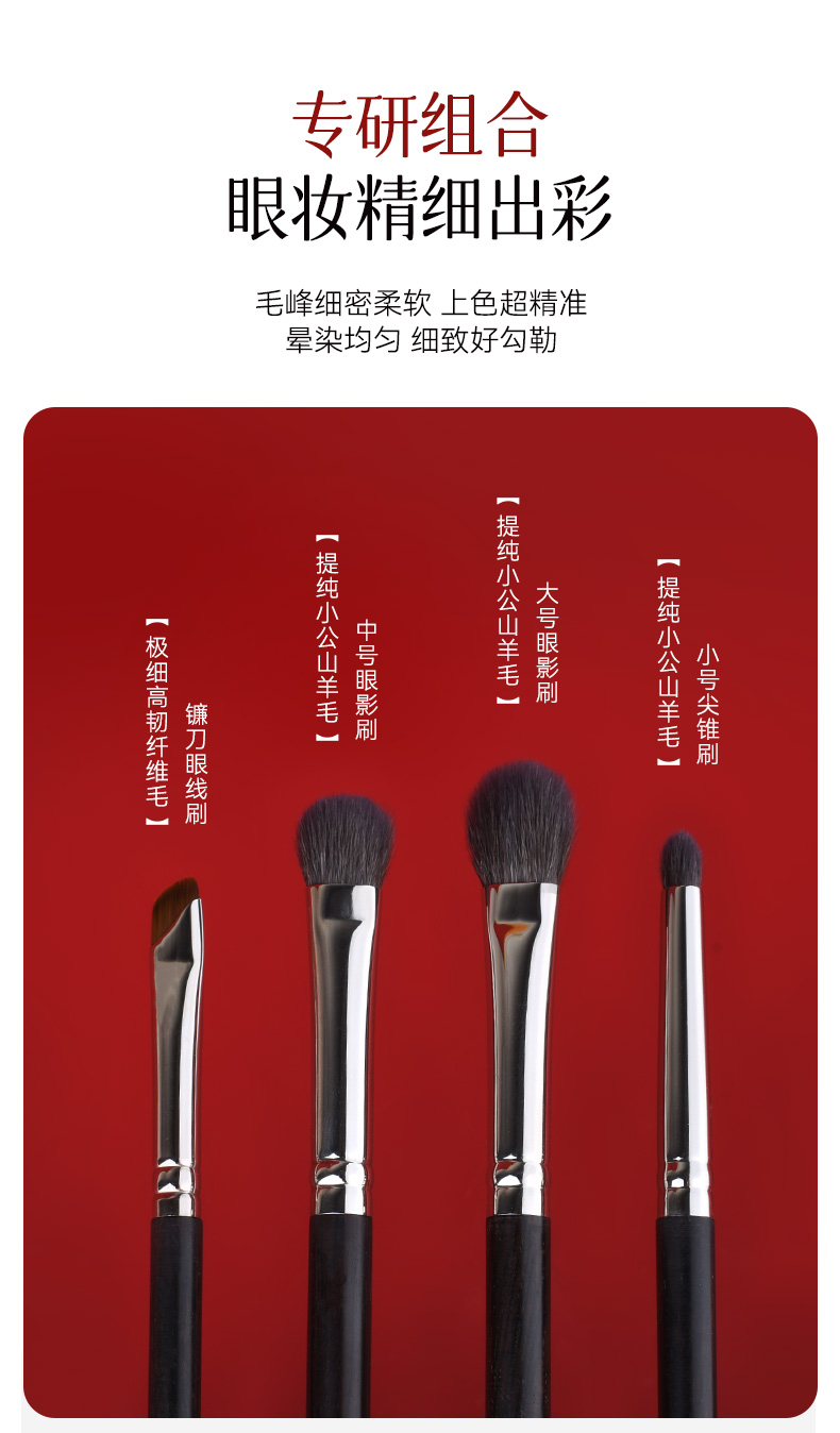 檀藝T78山羊毛眼影刷套裝4支眼部鋪色刷暈染刷眼頭提亮細節刷子