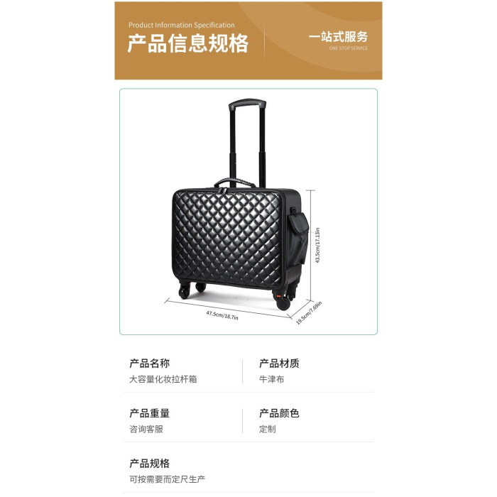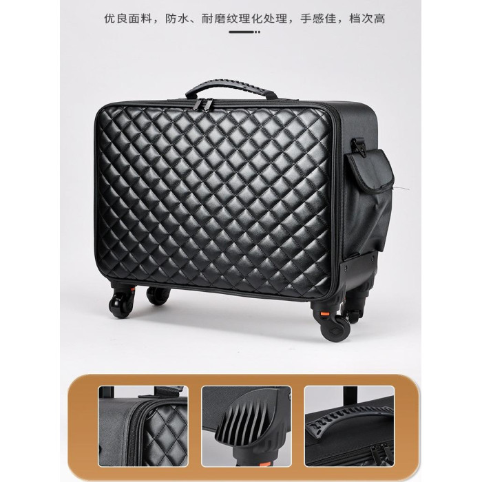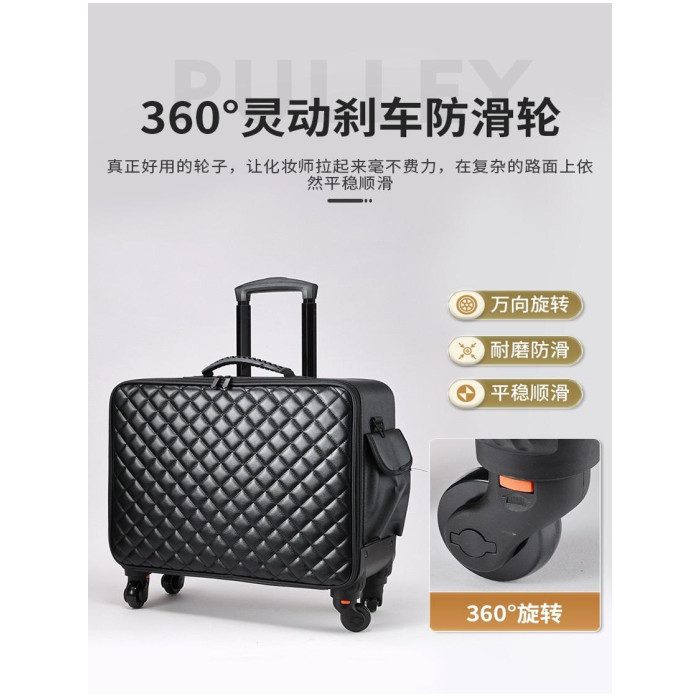 新款專業化妝箱拉桿紋綉美甲工具箱PU皮多功能彩妝跟妝美容拉桿箱
