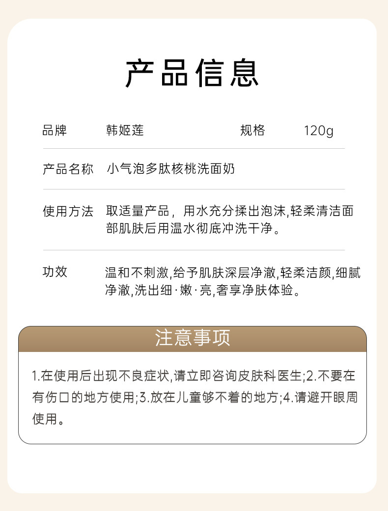 産品規格 韓姬蓮小氣泡多肽核桃洗面奶947
