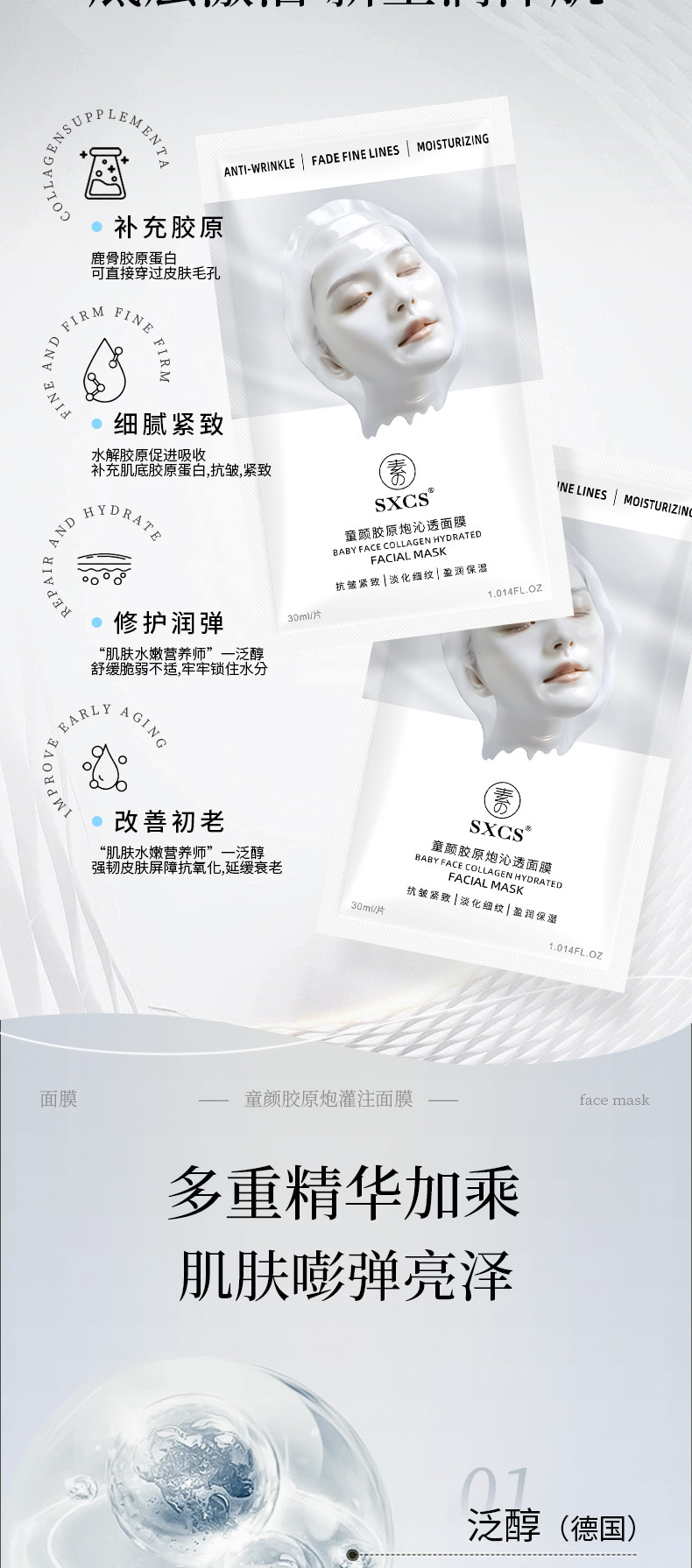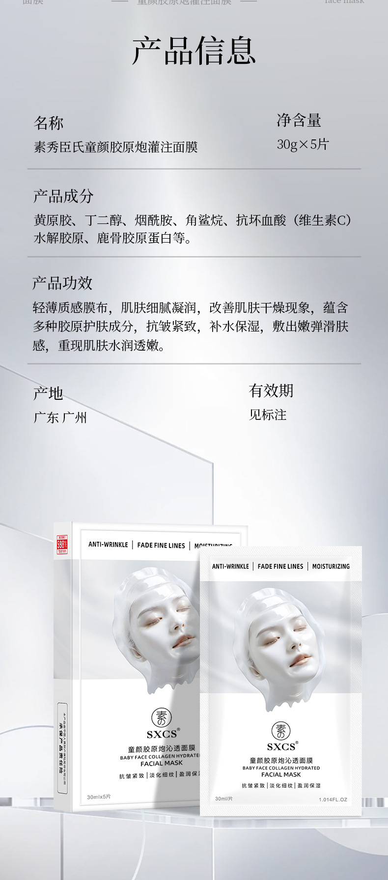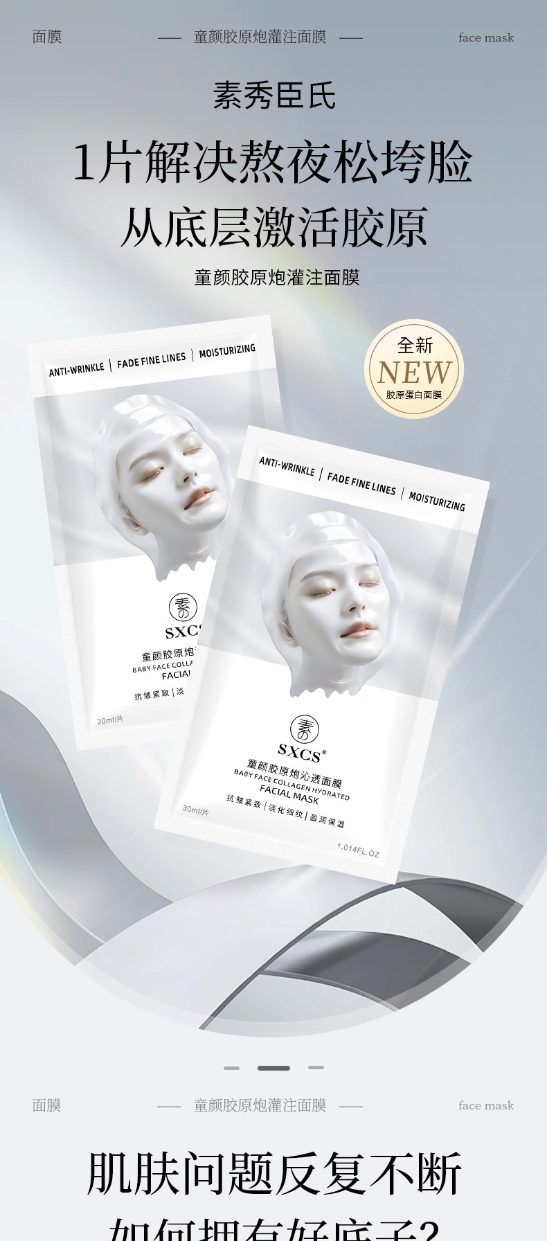 | 産品名稱 | SXCS童顔膠原砲沁透面膜 |