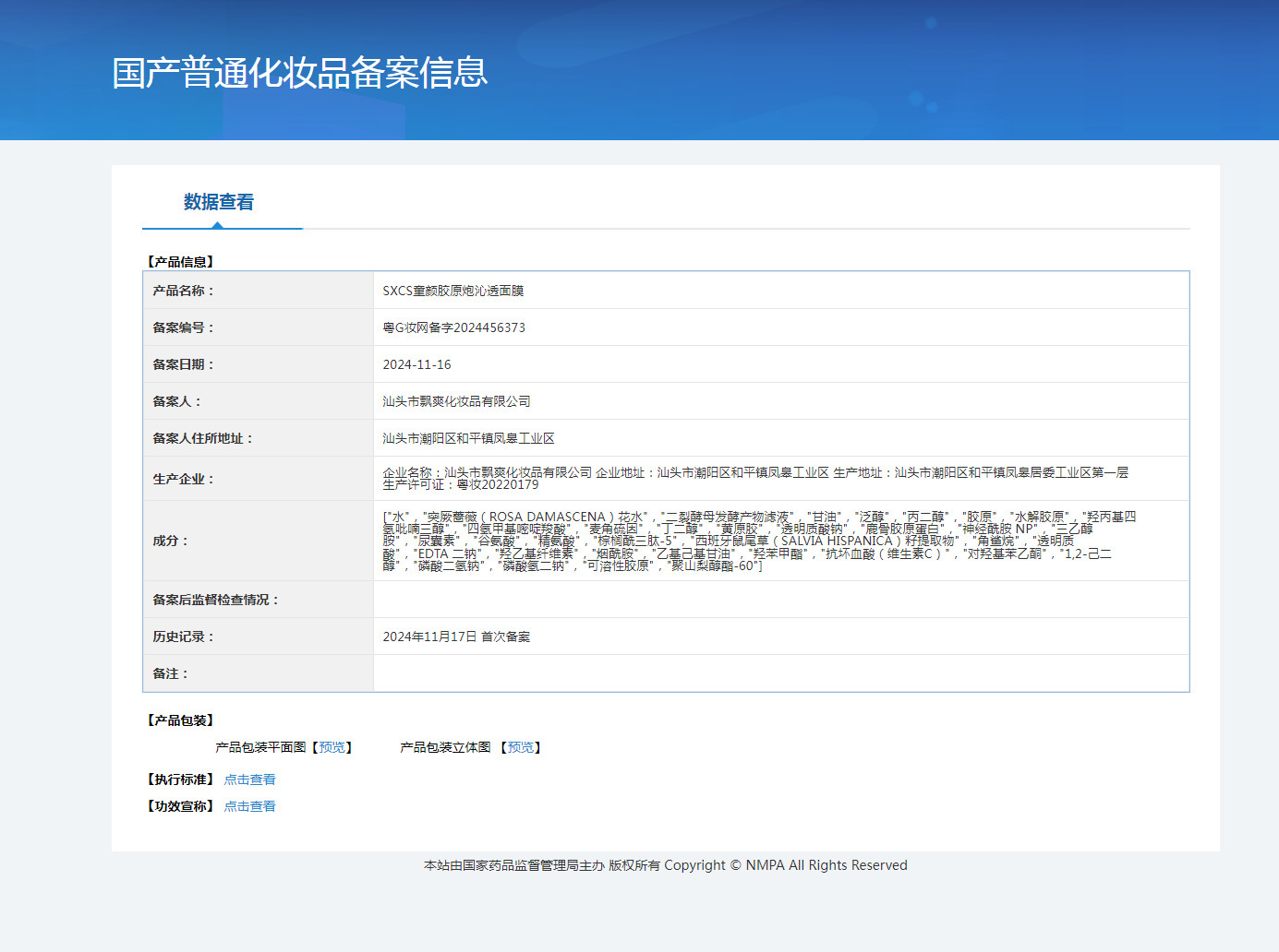 | 非特化妝品備案證號 | 粵G妝網備字2024456373 |