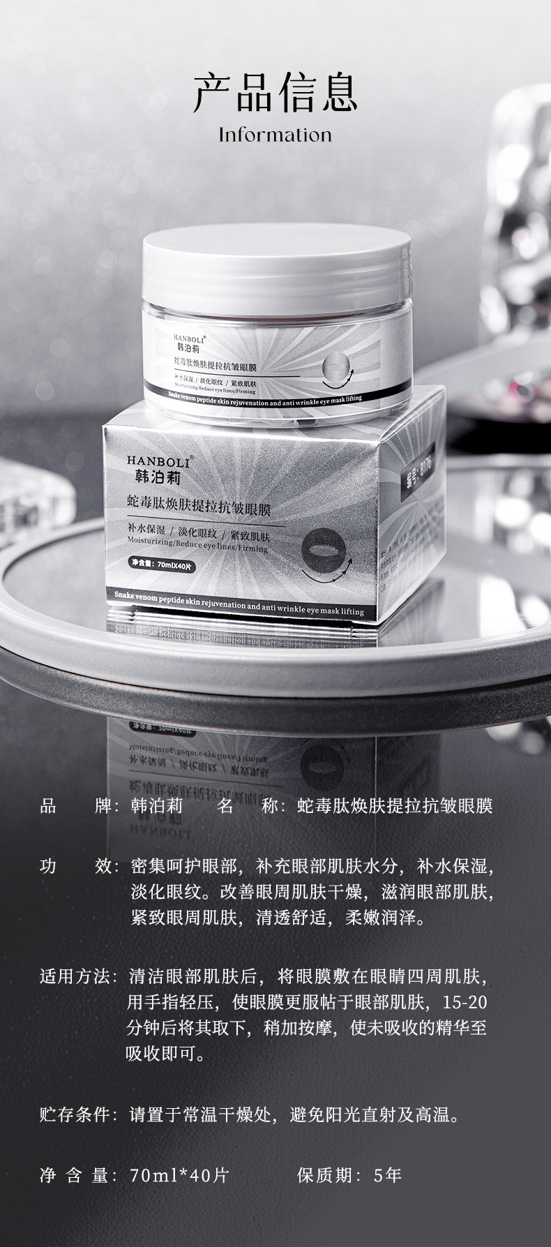産品名稱 HANBOLI韓泊莉蛇毒肽煥膚提拉抗皺眼膜