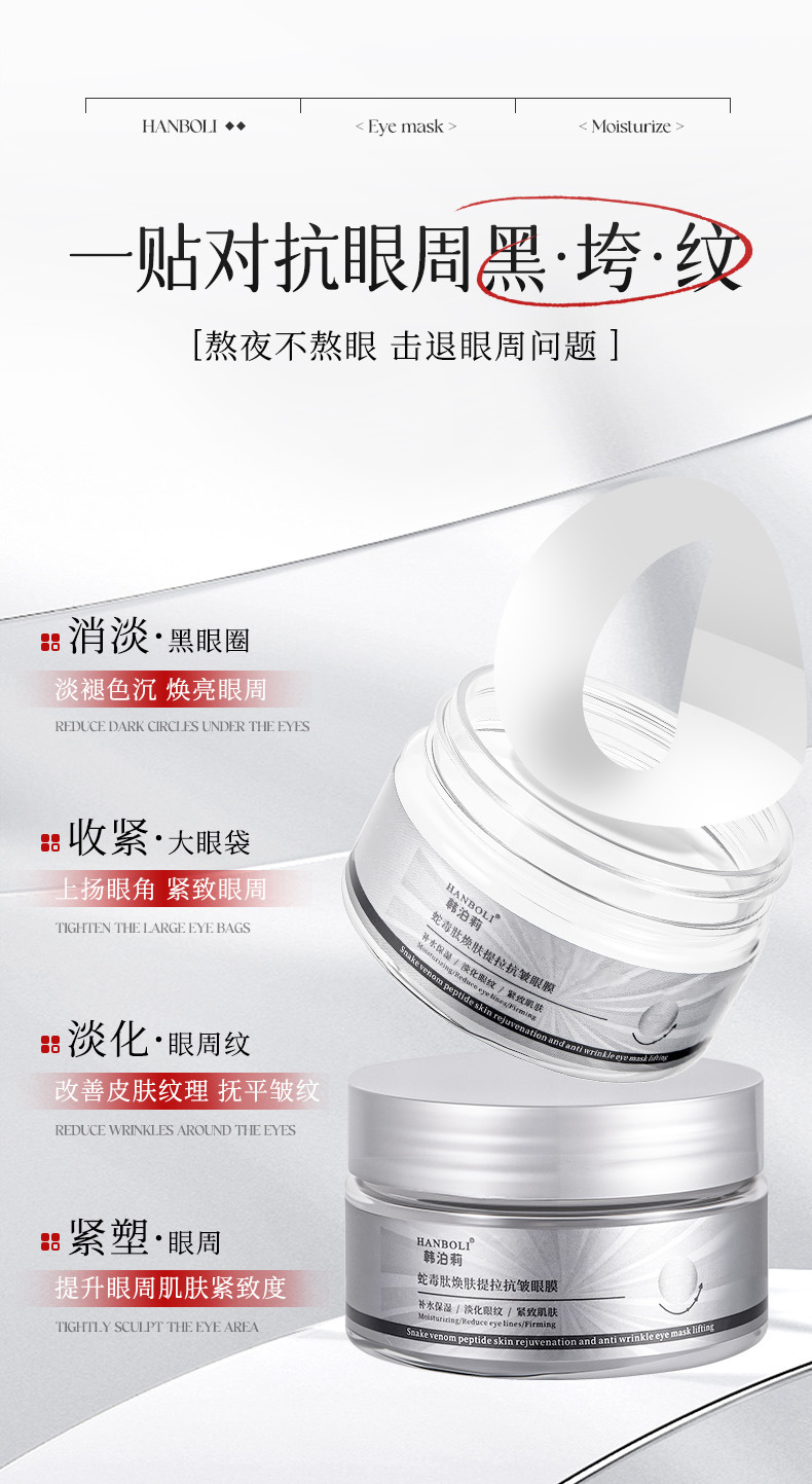 特妝産品名稱 HANBOLI韓泊莉蛇毒肽煥膚提拉抗皺眼膜