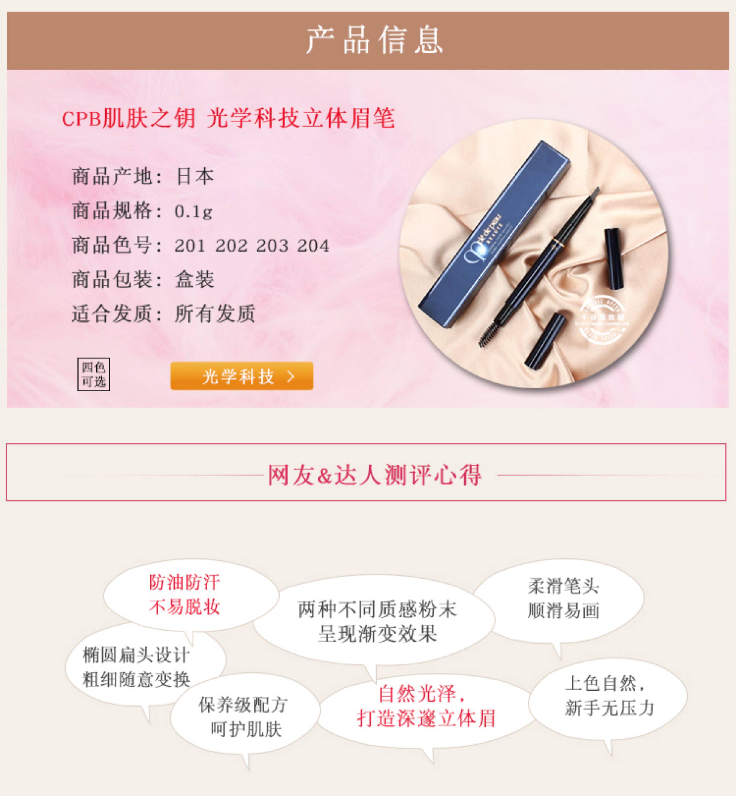 日本 CPB肌膚之鑰光學科技持久立體眉筆芯筆桿帶眉刷套裝 好上色