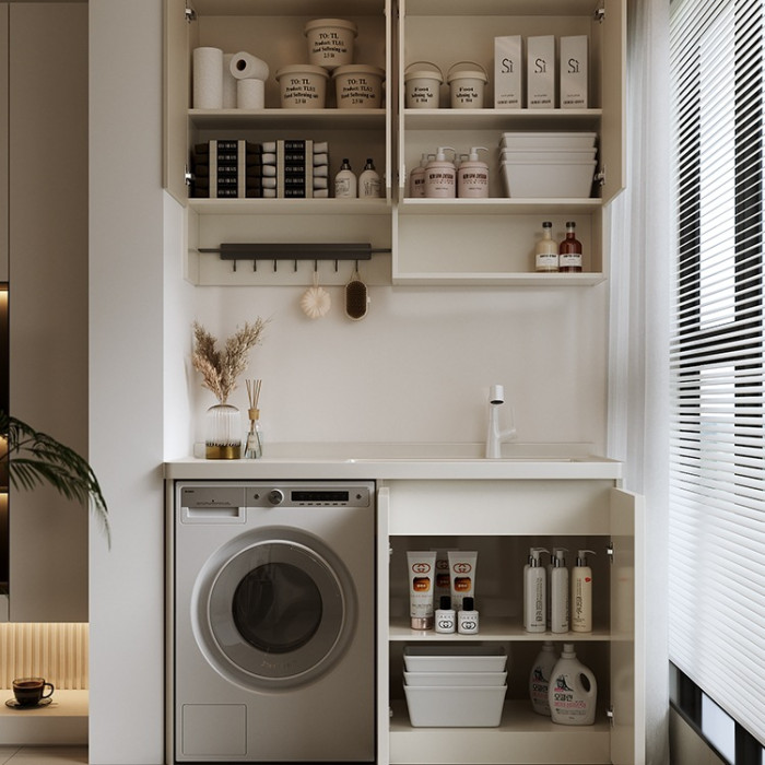 新款烤漆不鏽鋼陽台滾筒洗衣機一體台盆櫃組合洗衣櫃伴侶切角定