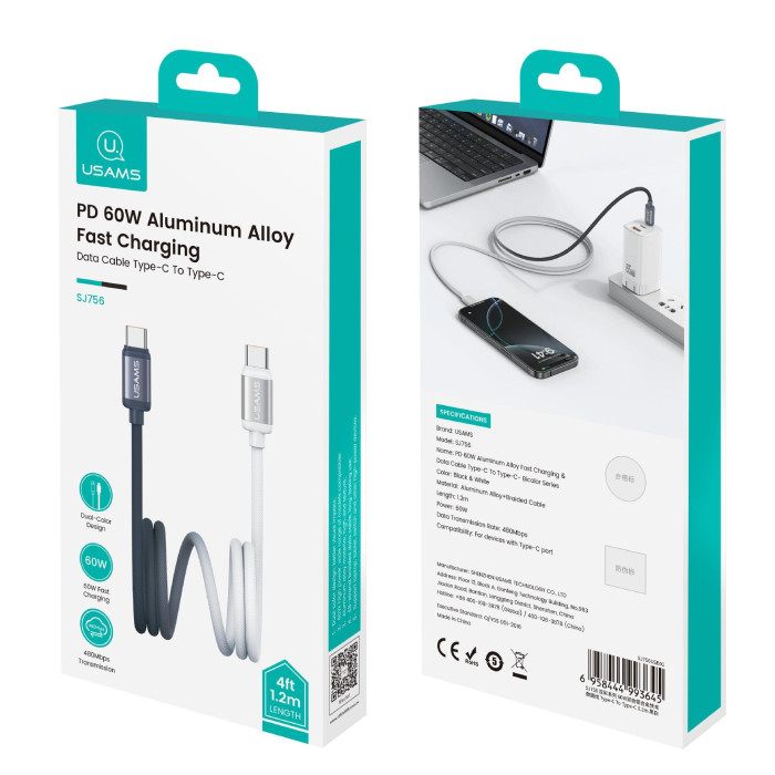 USAMS優勝仕PD60W充電線適用蘋果iphone16快充充電手機數據線15