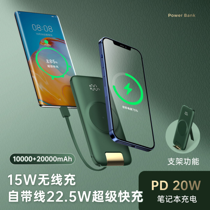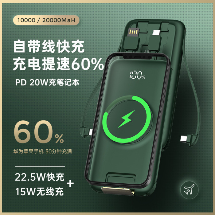 新款無線充電寶22.5W超級快充20000安培大容量自帶線便捷行動電源