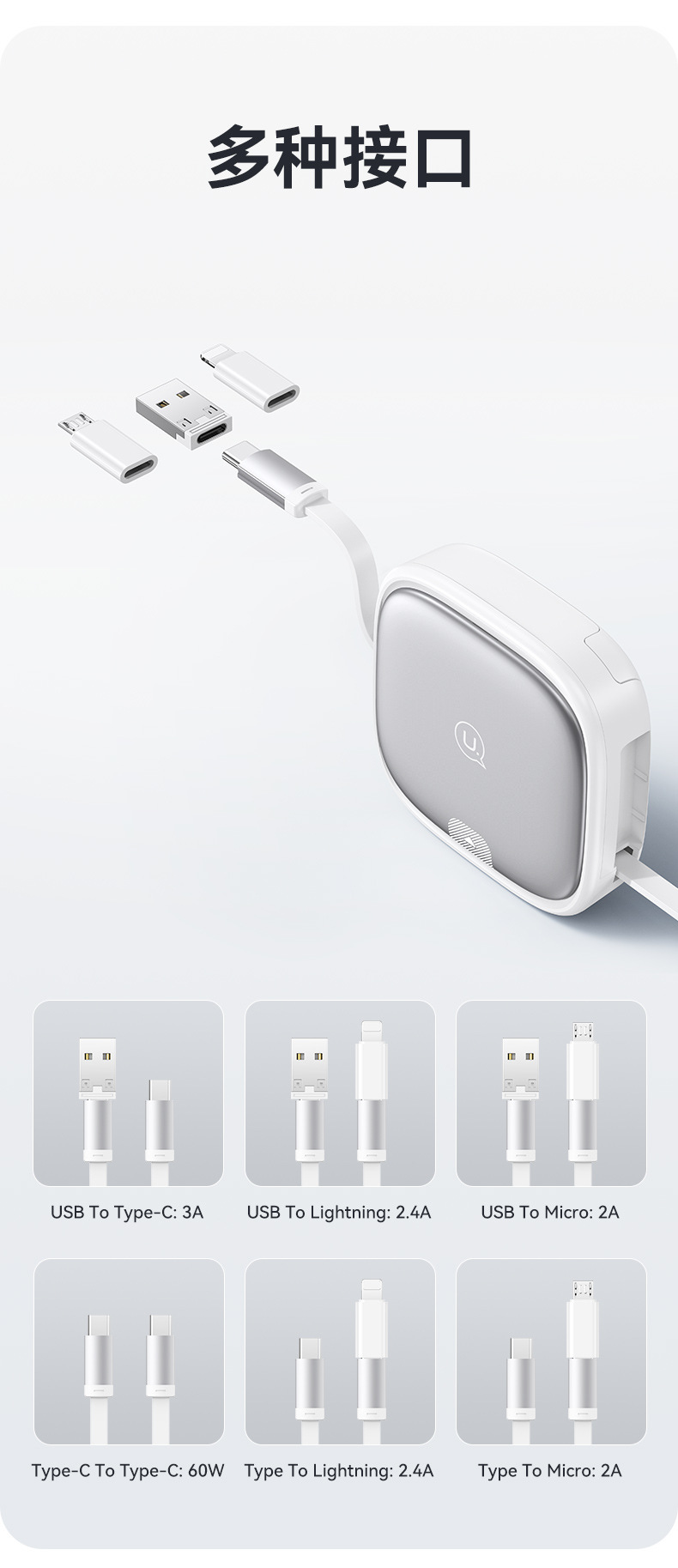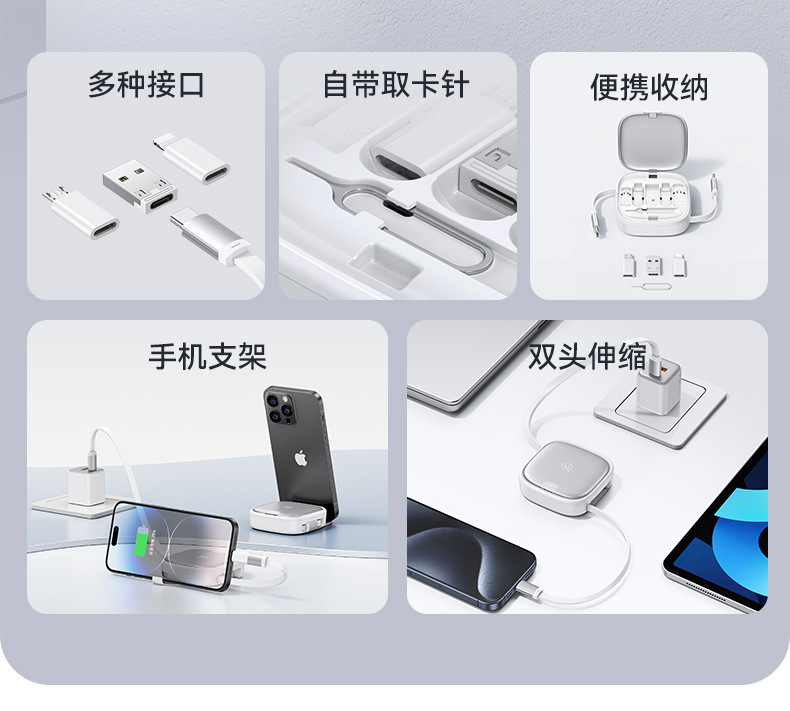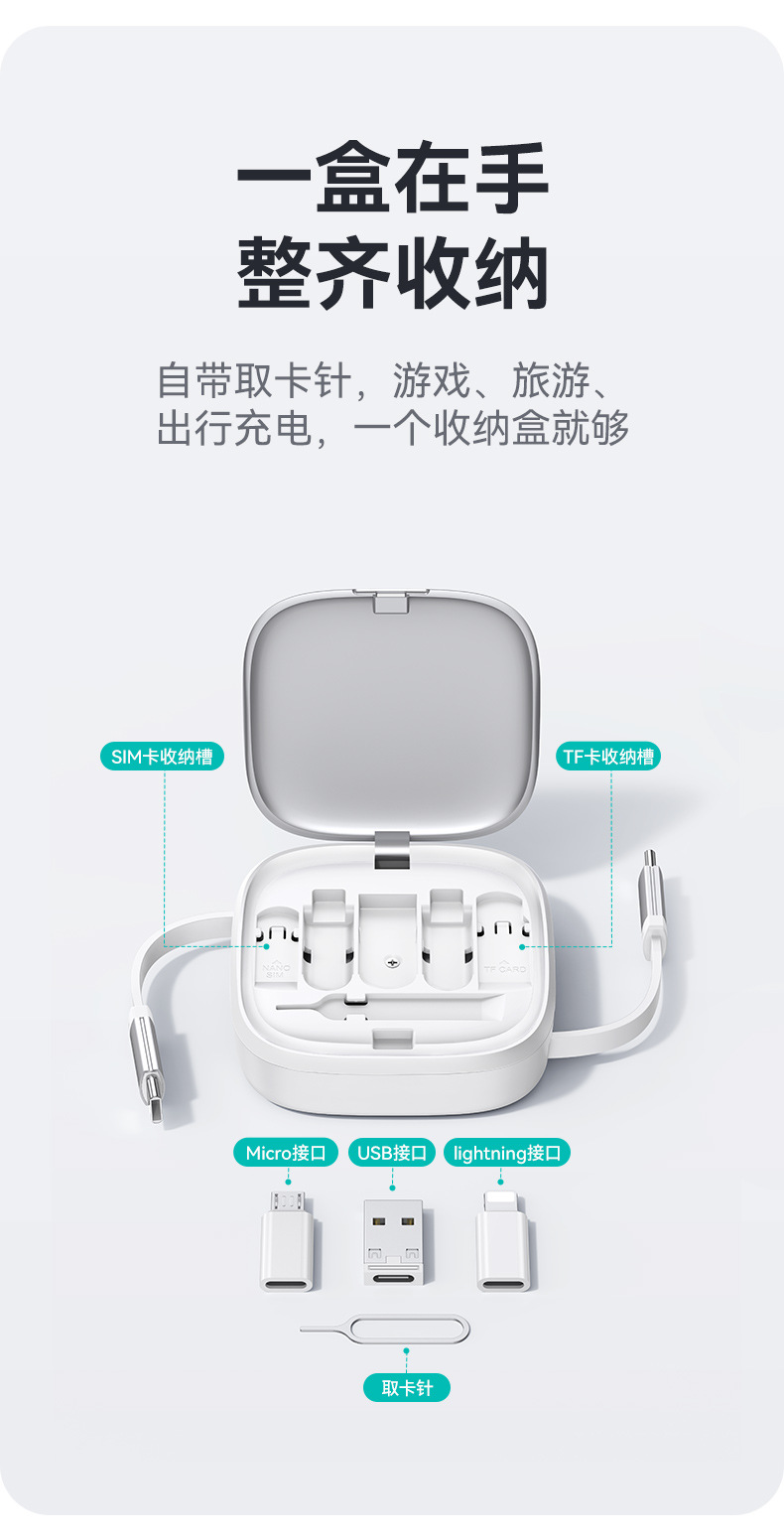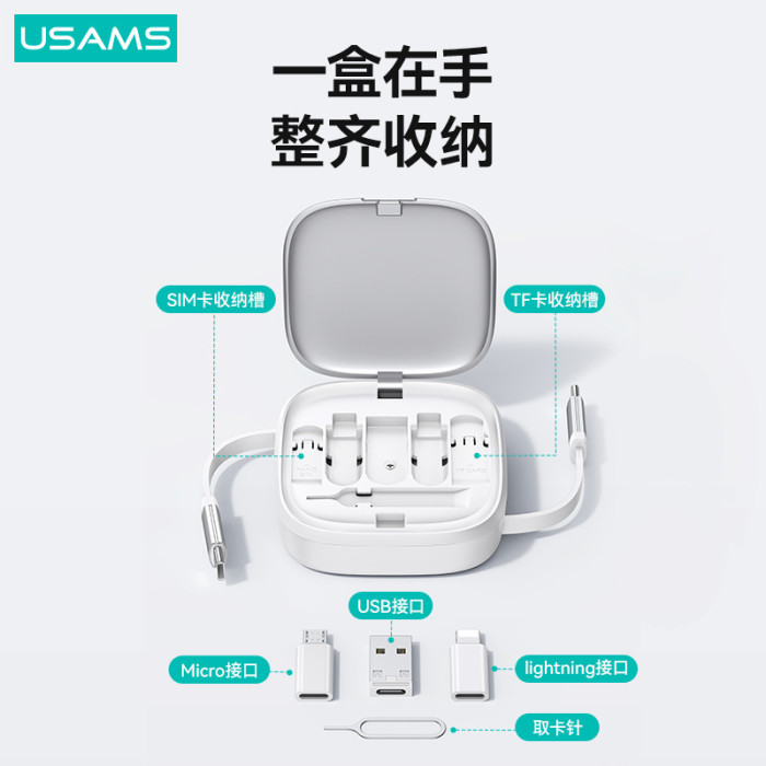 優勝仕U87多功能數據線USB轉typec轉Lightning收納盒60W轉換器頭