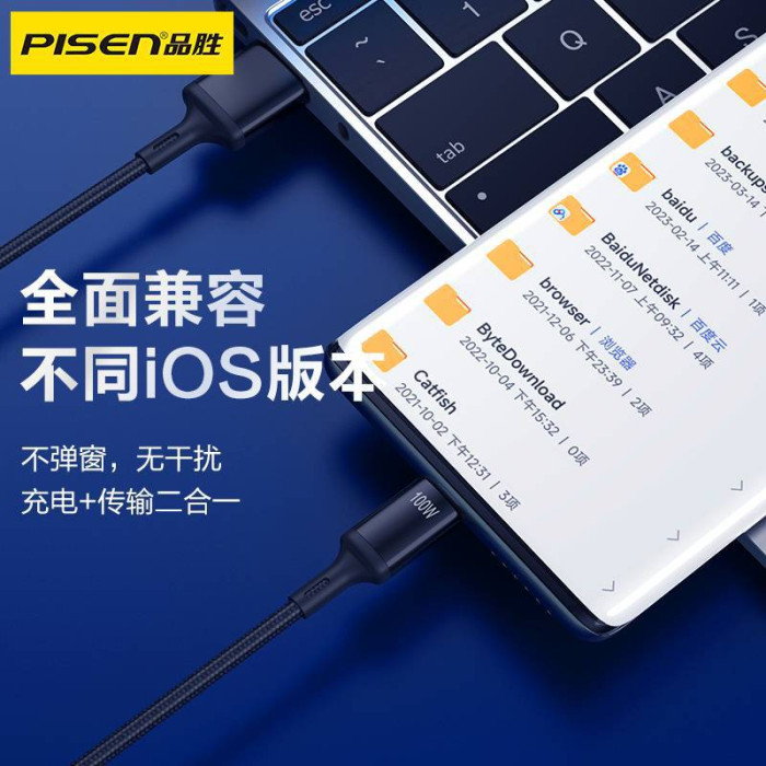 品勝6A三合一快充數據線100W二拖三充電線66W閃充一拖三適用蘋果
