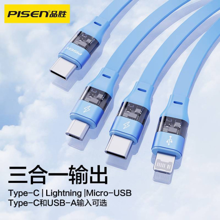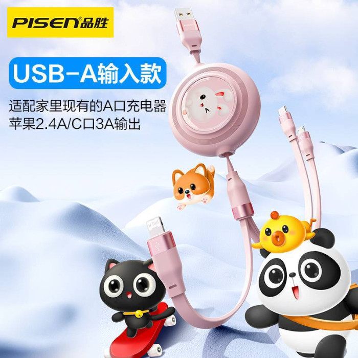品勝三合一數據線卡通伸縮27W快充適用華爲小米蘋果15安卓iPhone1