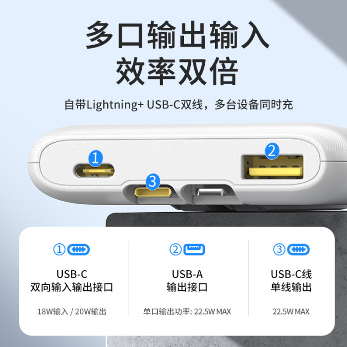 品勝自帶線充電寶超大容量10000安培雙向快充22.5W行動電源20W瓦