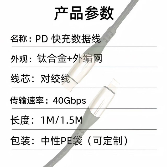 鈦合金快充數據線PD100W雙Type-C接口適用蘋果華爲快充平板筆電