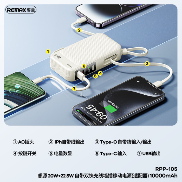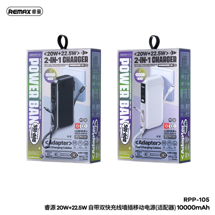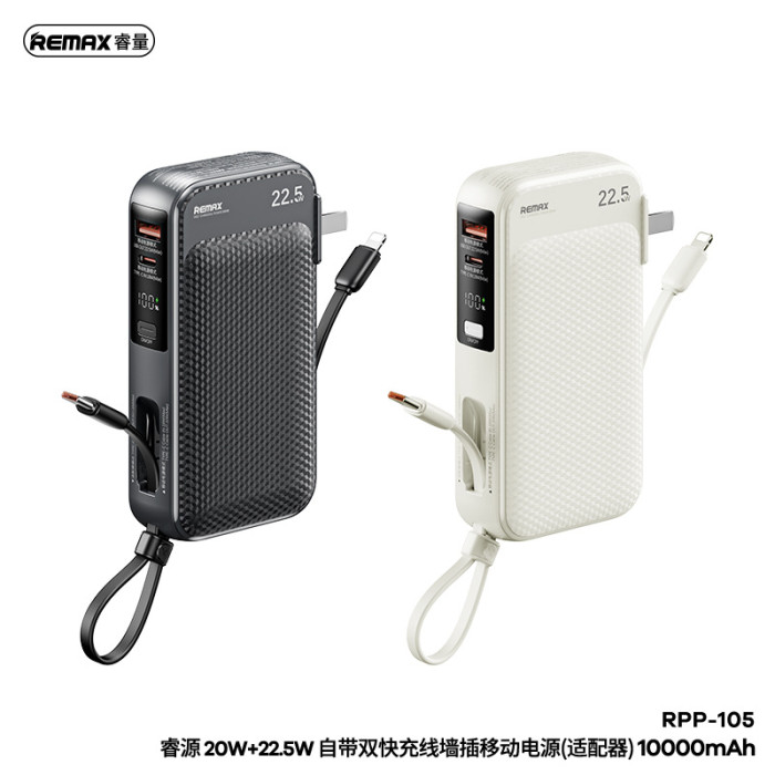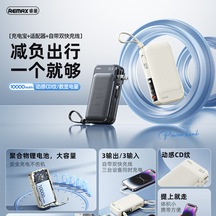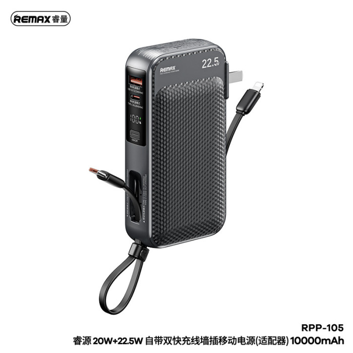 remax 自帶線充電寶 雙線快充10000安培行動電源快充充電寶禮品