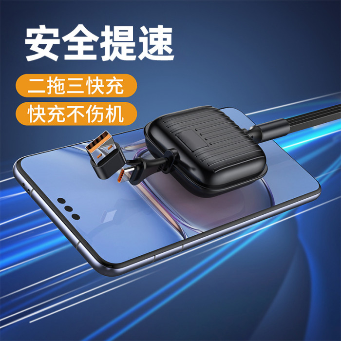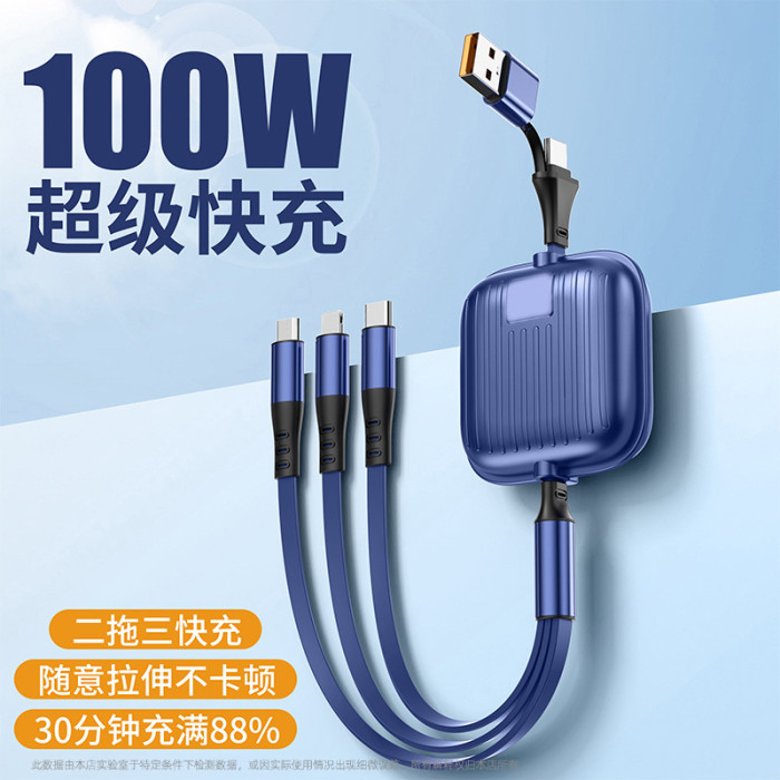 100W超極快充USB轉Type-c二拖三可伸縮車用充電線適用tpc蘋果安卓