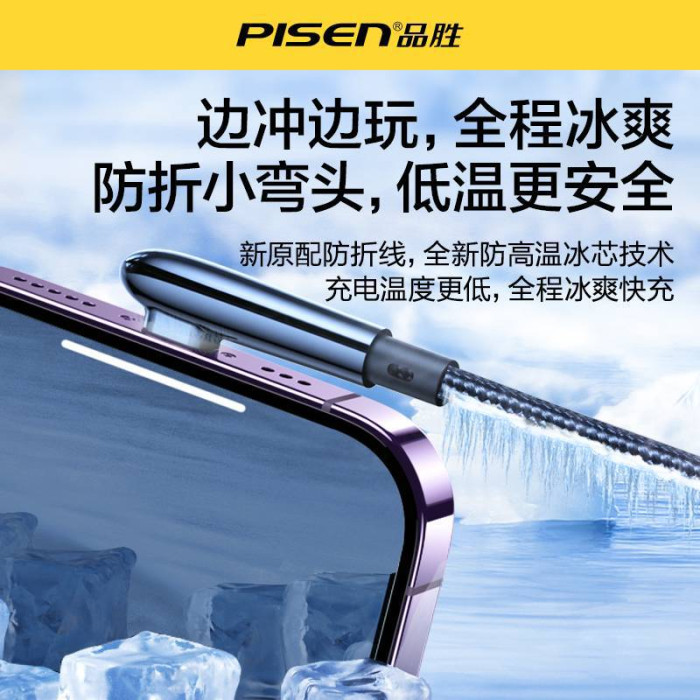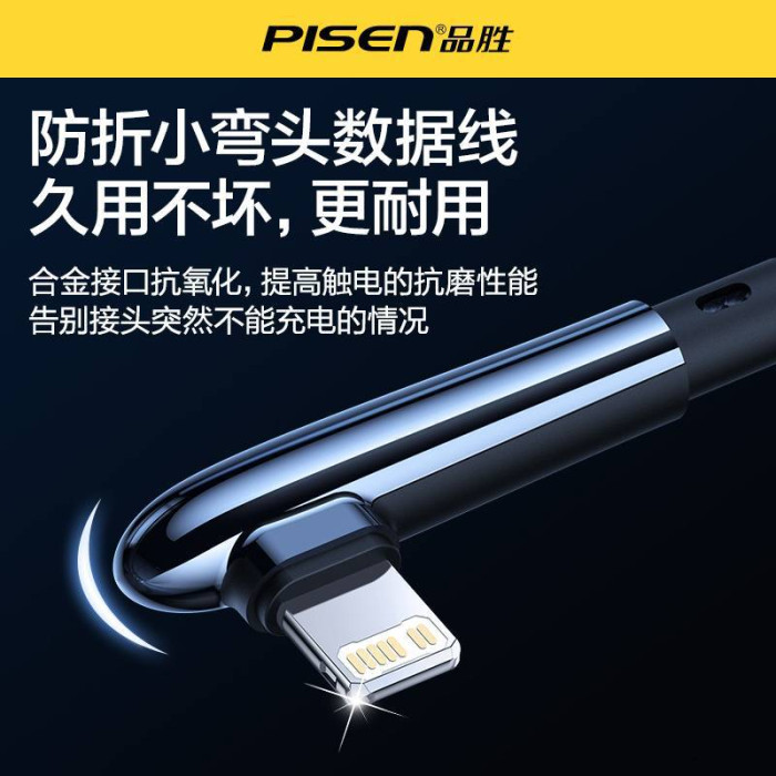 品勝2.4A快充數據線27W彎頭不擋手遊戯專用USB TOL 編織線1.3米PD