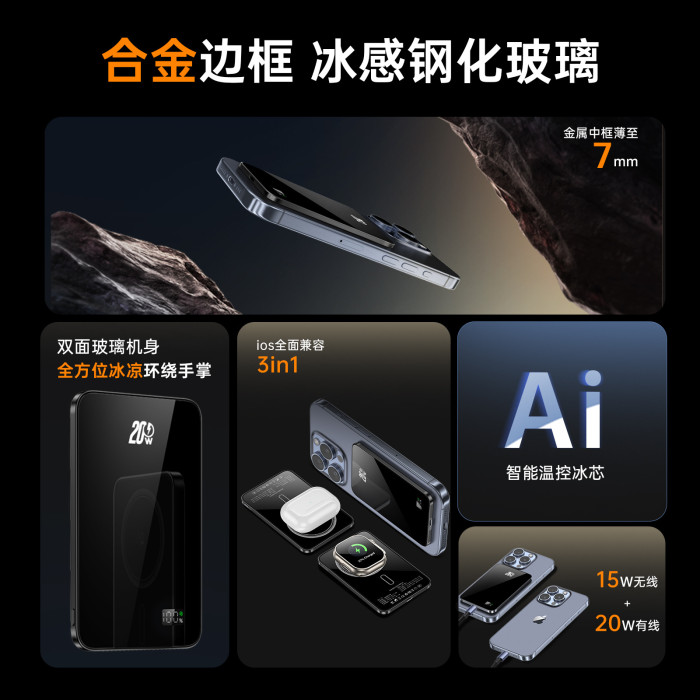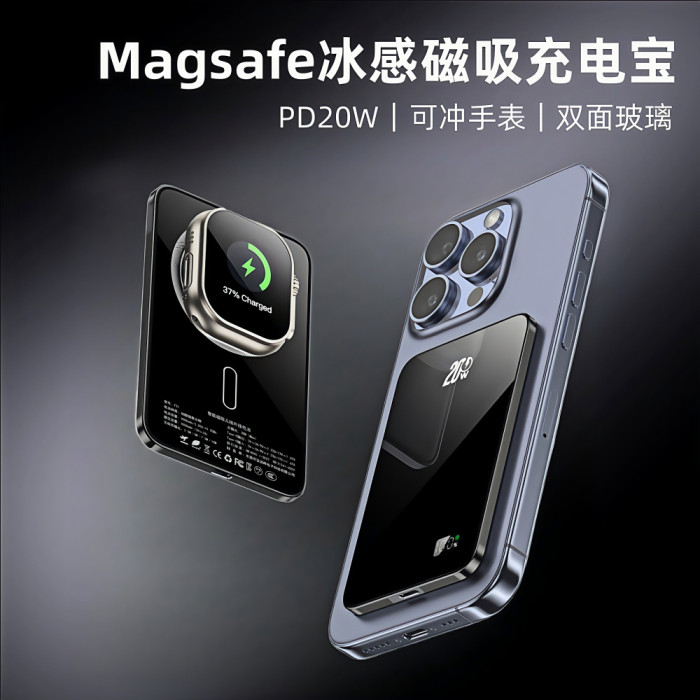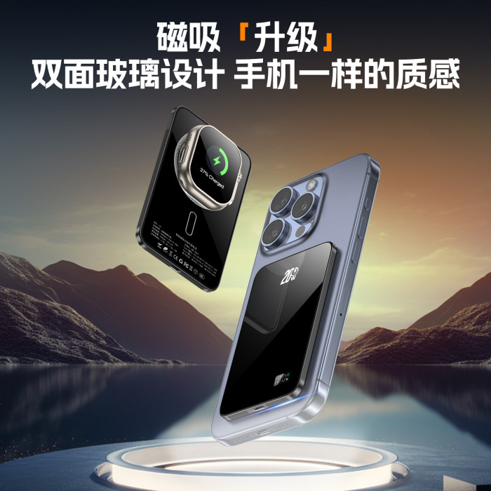 新款超薄Magsafe磁吸充電寶10000安培耳機手錶充數顯行動電源