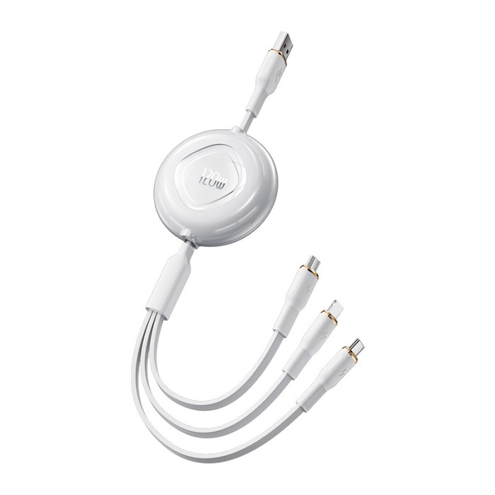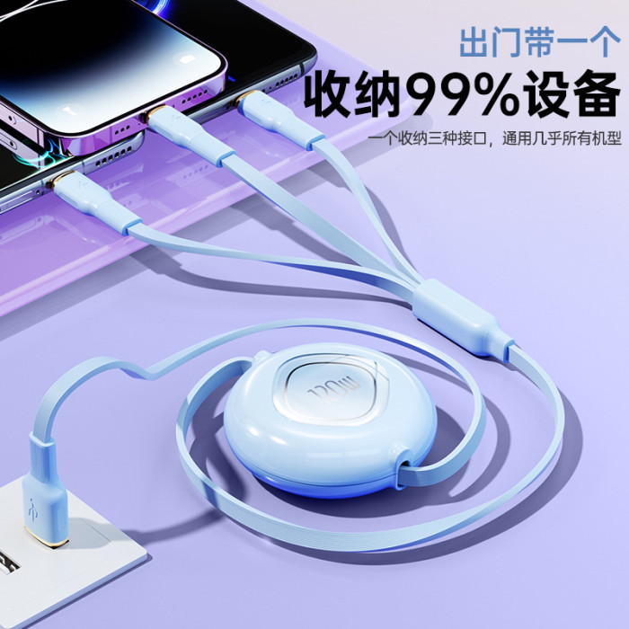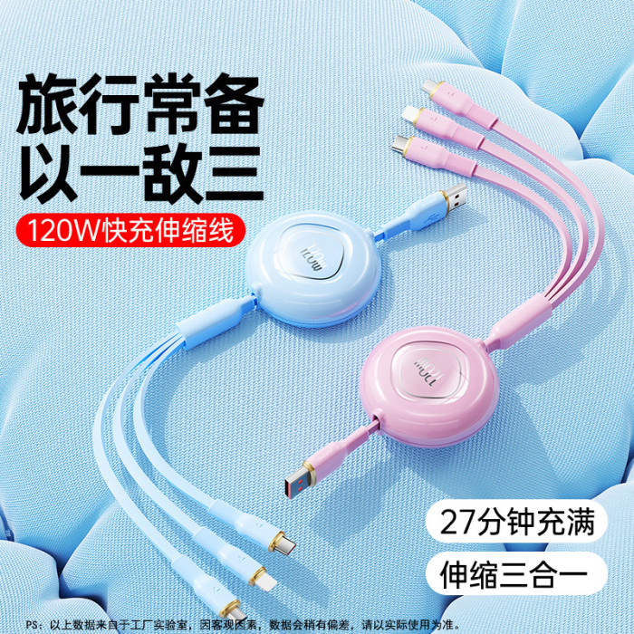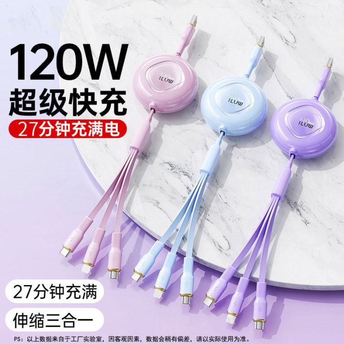 120W超級閃充伸縮充電線三合一多功能6A大容量數據線適用蘋果華爲