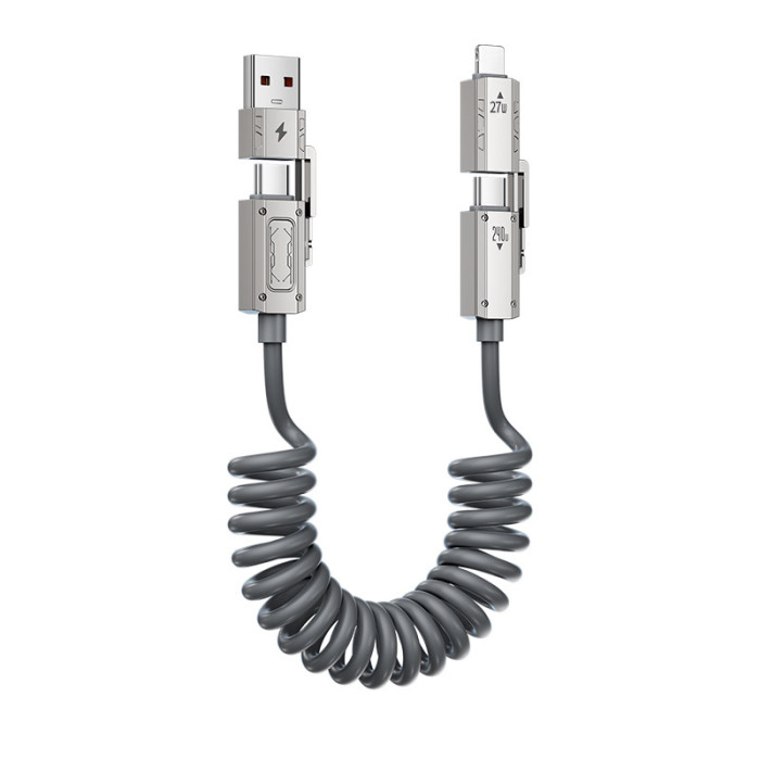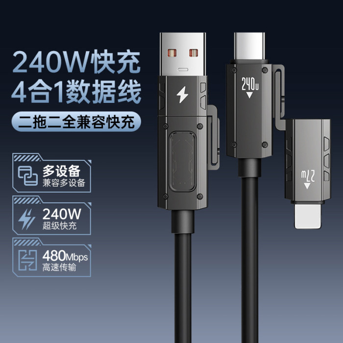 240W充電線四合一數據線液態矽膠適用蘋果16安卓Type-C車用伸縮線