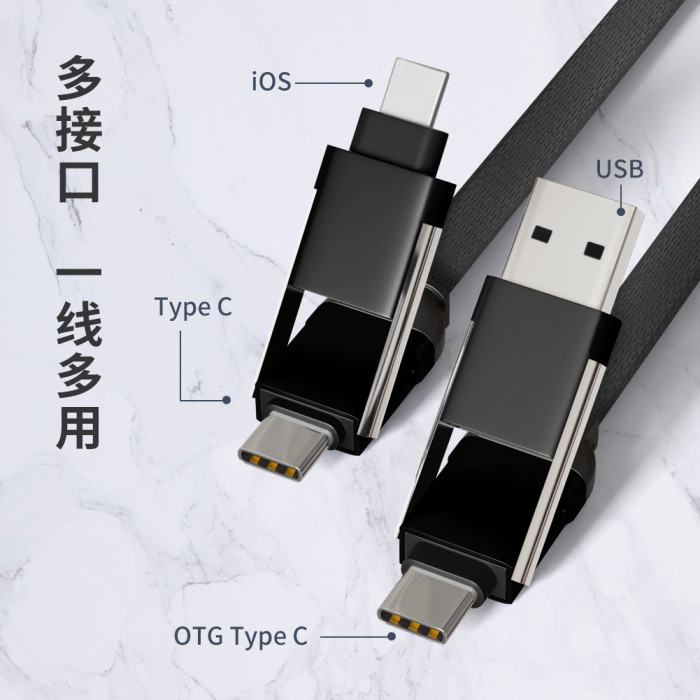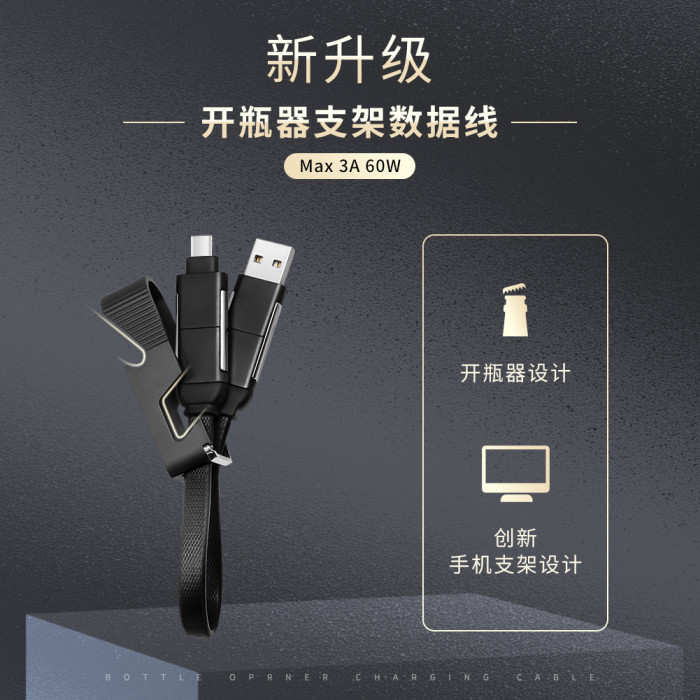 60W超級快充四合一創意手機數據線開瓶器卡扣支架手機充電線通用