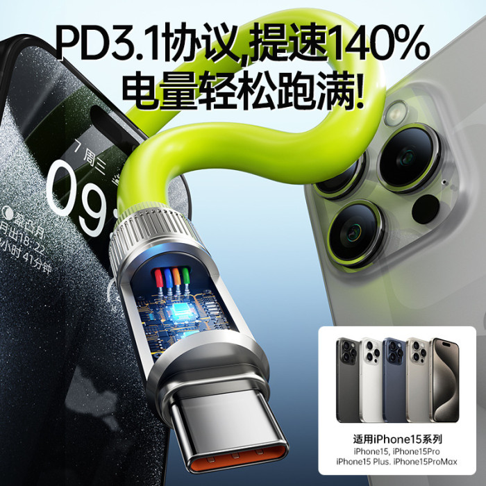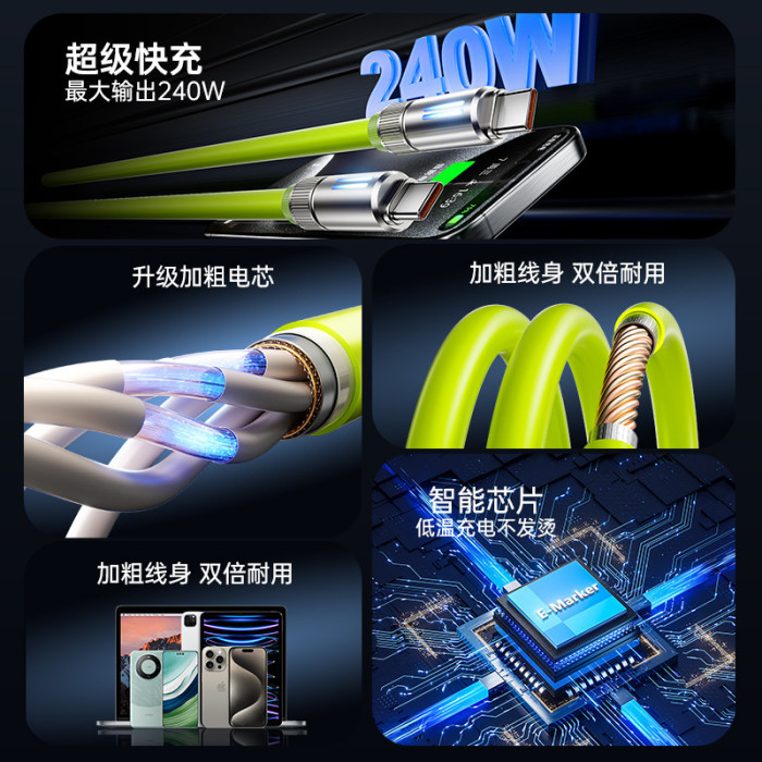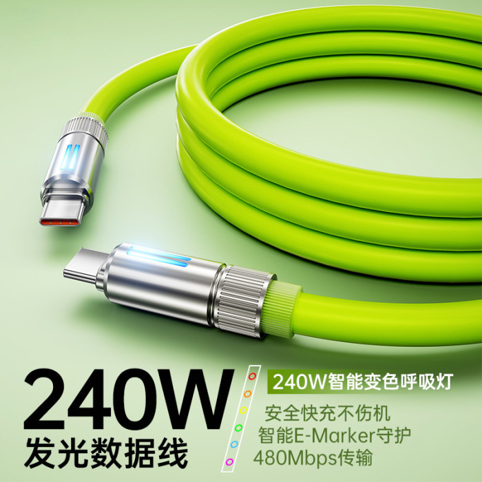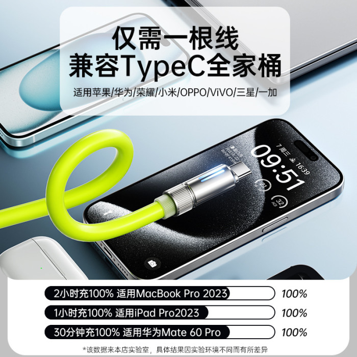真矽膠機客數據線type-c手機充電線適用華爲蘋果6A快充發光極客線